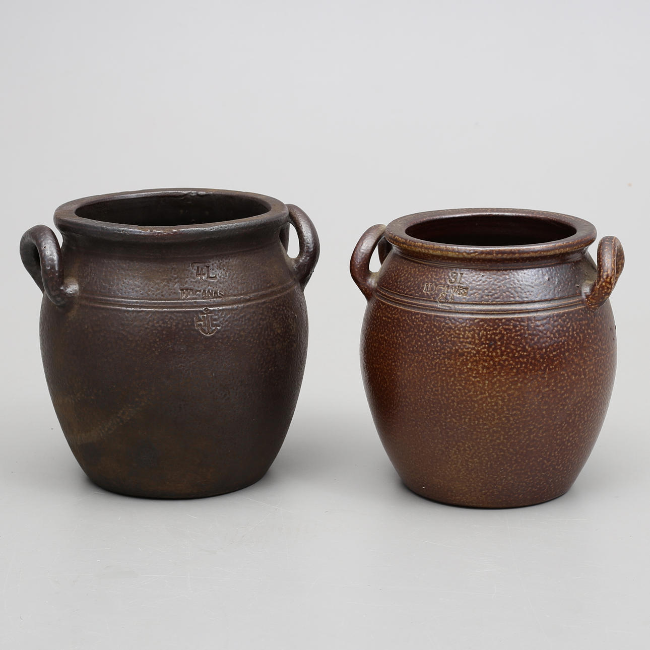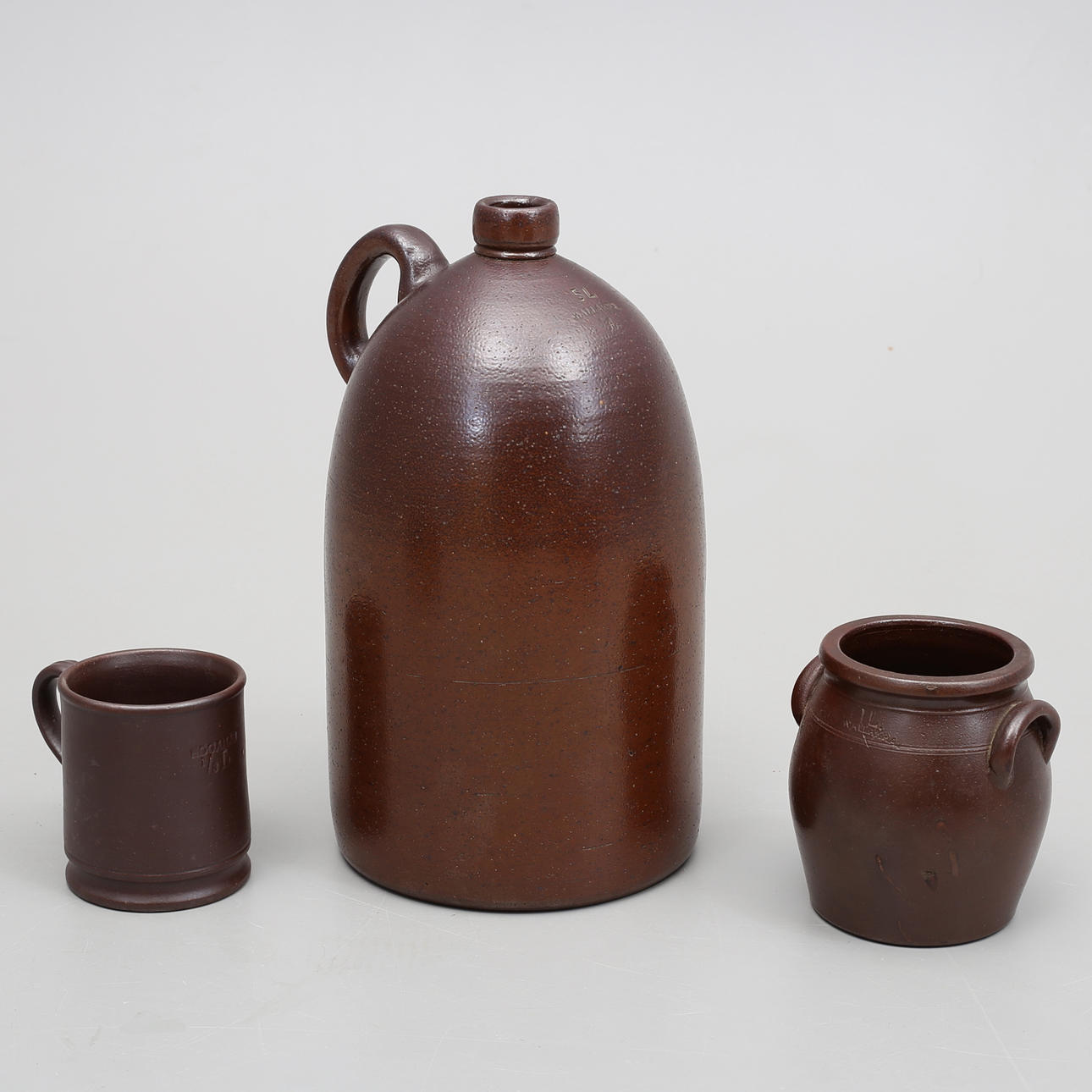 2 krus Wallåkra 1L, 5L höjd 13,5 och 33 cm. 4 krus samt mugg Höganäs 10,5 - 26,5 cm.