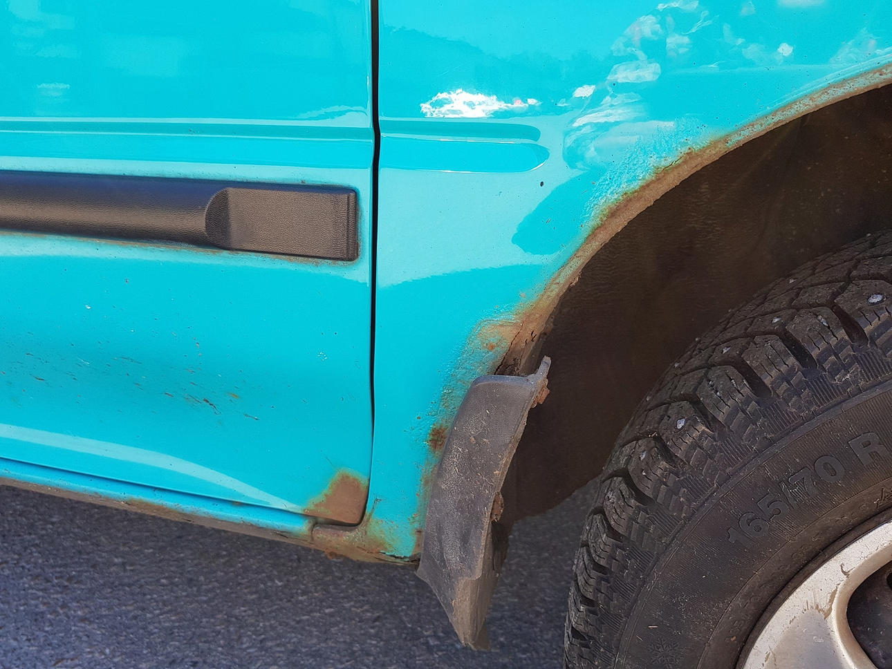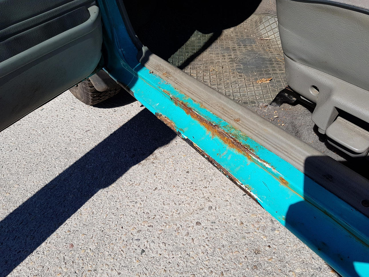 Rost. Slitage, ställvis hårdare.