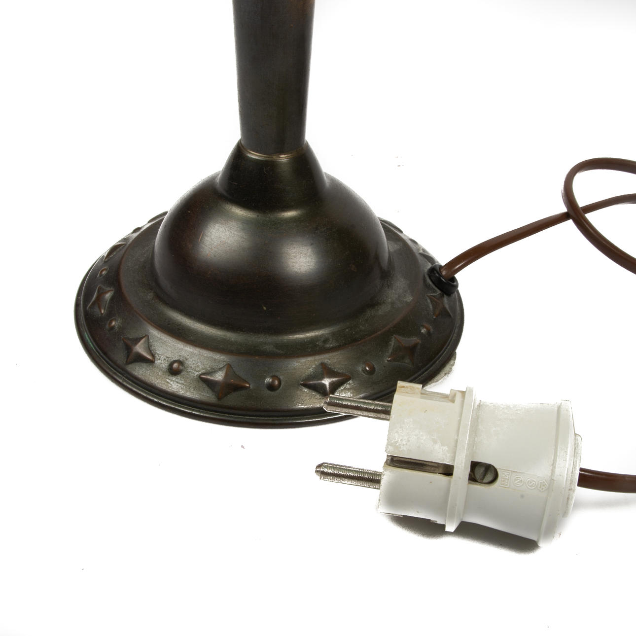 847874. STRINDBERGSLAMPA, brons med grön glaskupa.
