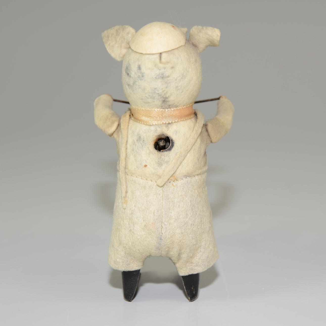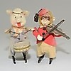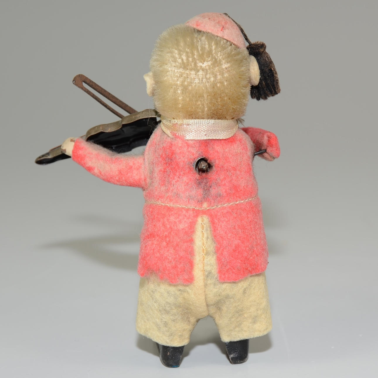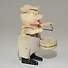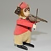 Två leksaker från Schuco, 1930-talet, virvelspelande gris, fiolspelande apa, en nyckel finns, fungerar, 11 cm höga.