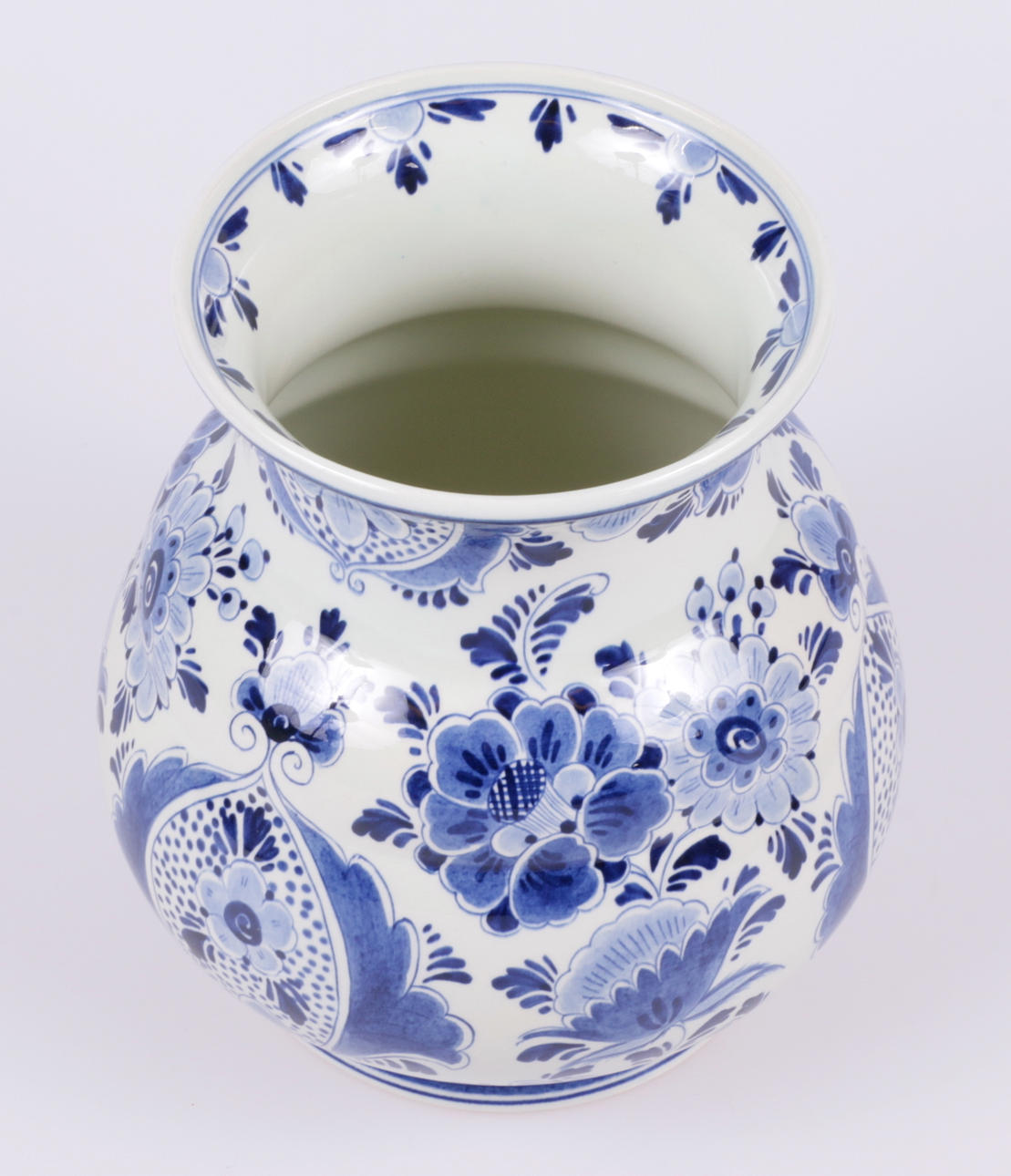 Vas med blå dekor av blommor. Märkt "Regina, WB 707 Delfts Blauw Holland T".