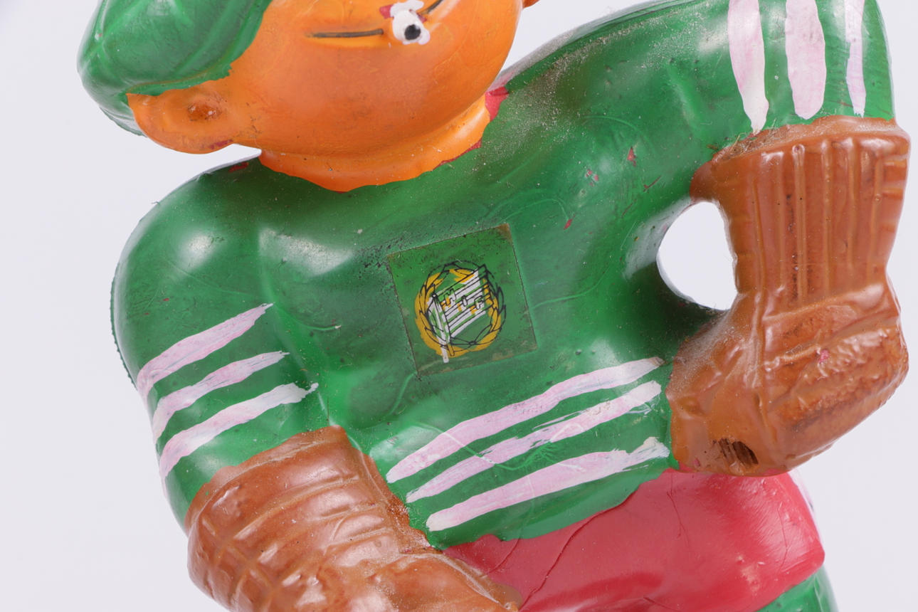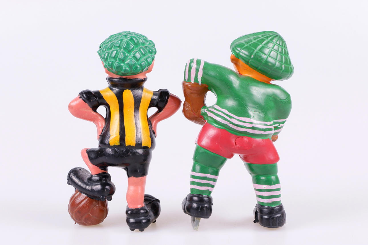 Figurer i gummi Hockeyspelare Tuffa Viktor, höjd 16 cm Fotbollsspelaren Tuffa Viktor, höjd 14,5 cm.