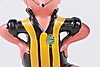 Hockeyspelaren saknar klubba samt ena skenan I övrigt repor och märken.