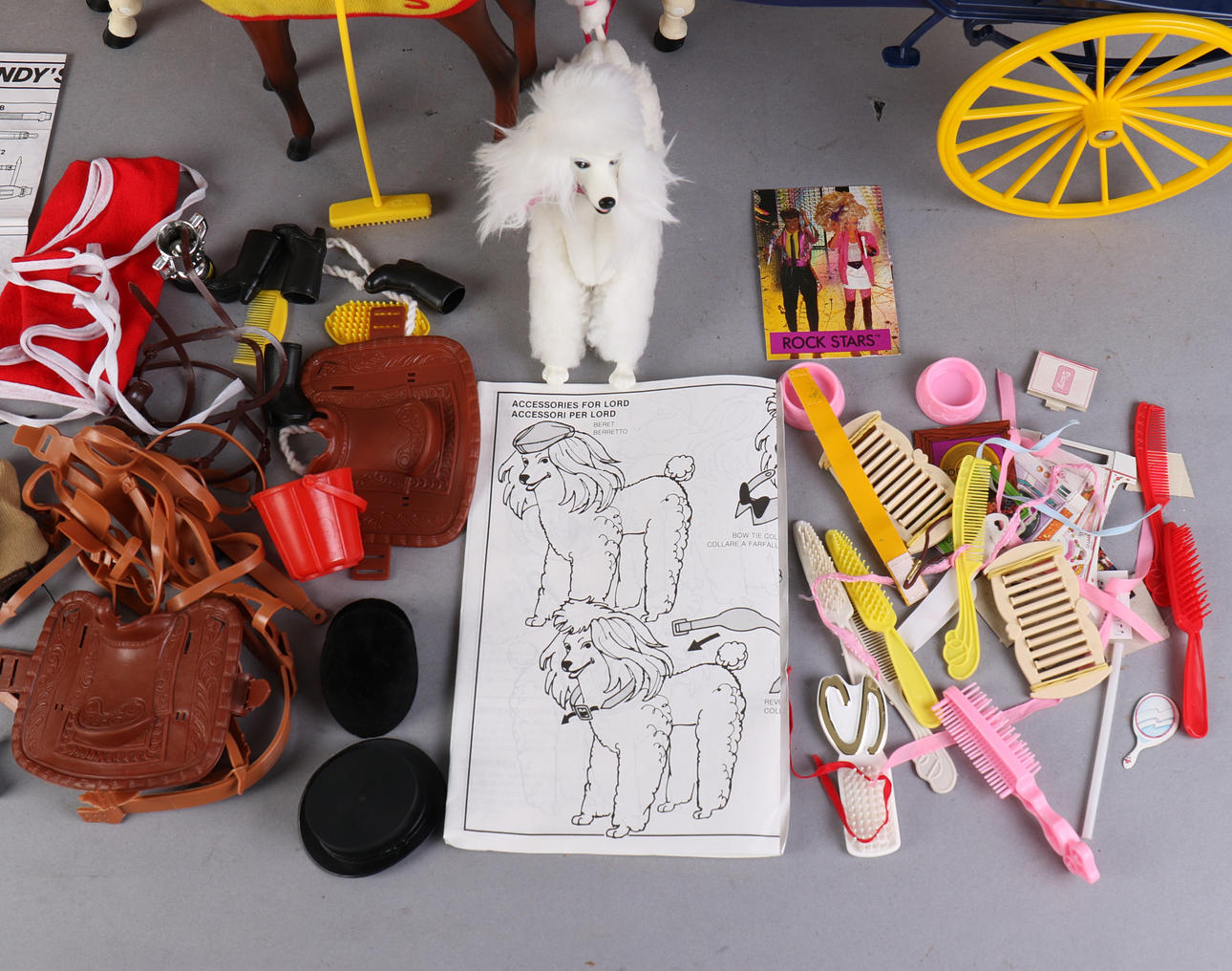 Barbies hund "Mylord" med tillbehör, höjd ca 11 cm.