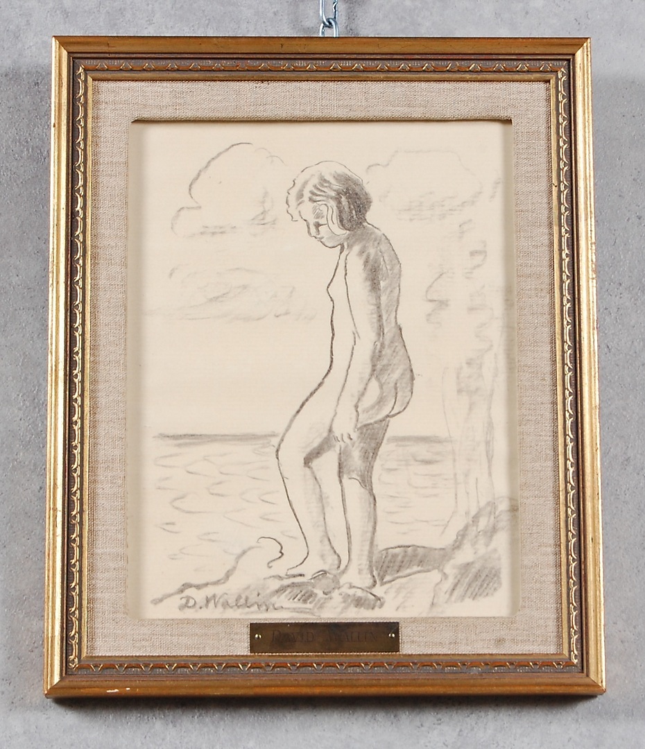 85081. DAVID WALLIN. teckning, " Flicka vid vatten " signerad.