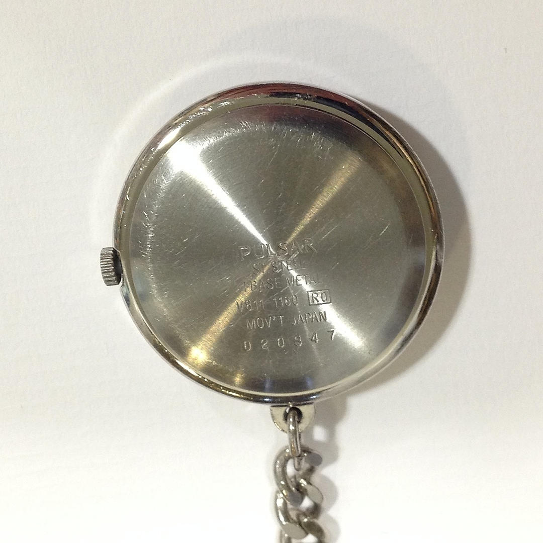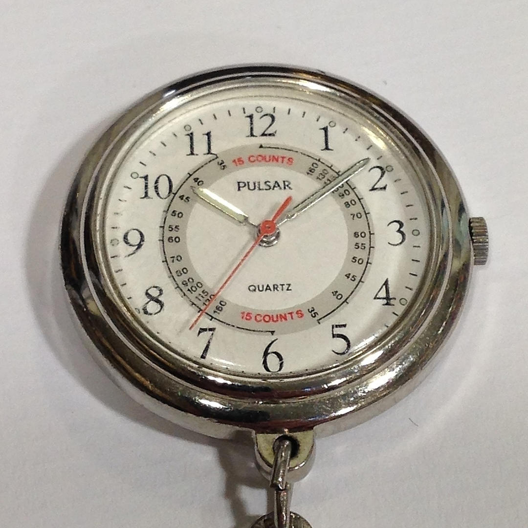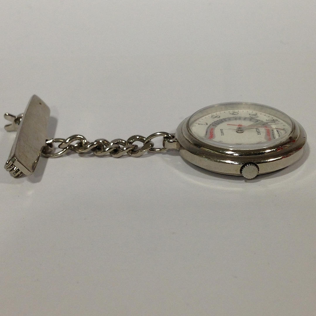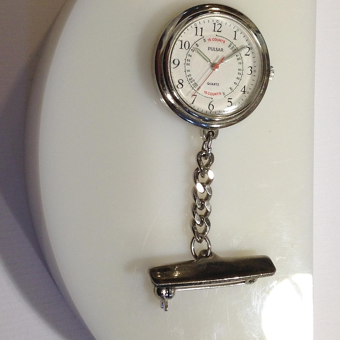 Den första klockan är en sjuksköterskor pulsar fob klocka. Klockan har en klämma och kedja