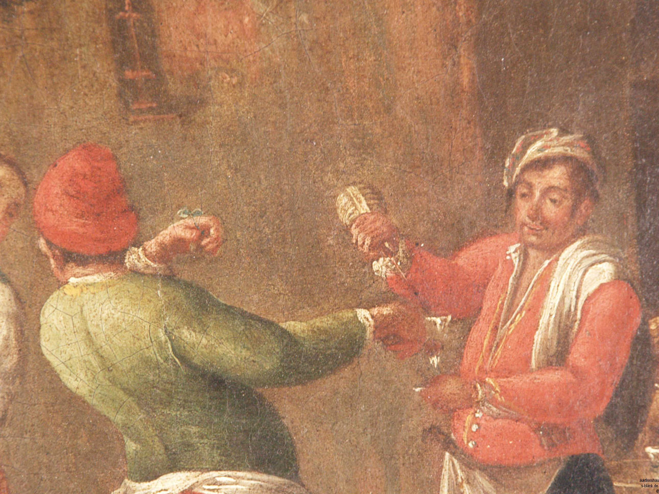 Okänd - ”Fröhliche Trinkgesellschaft”, olja på duk, ej signerad, ca. 30 x 43 cm.