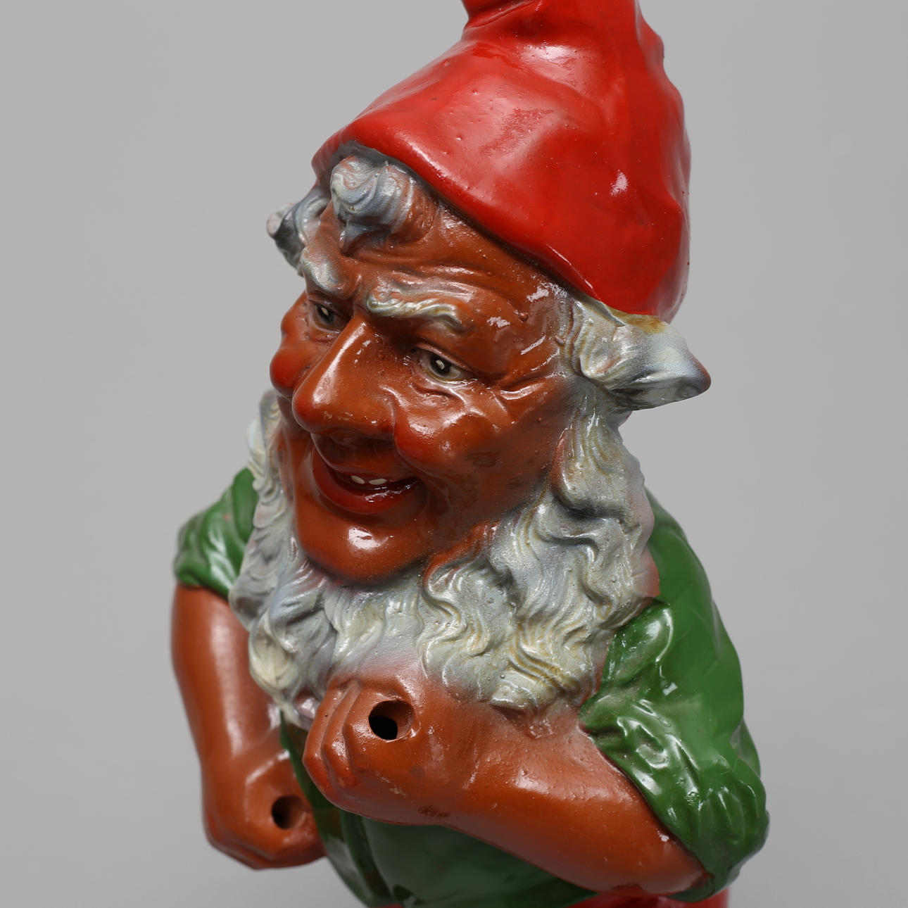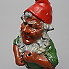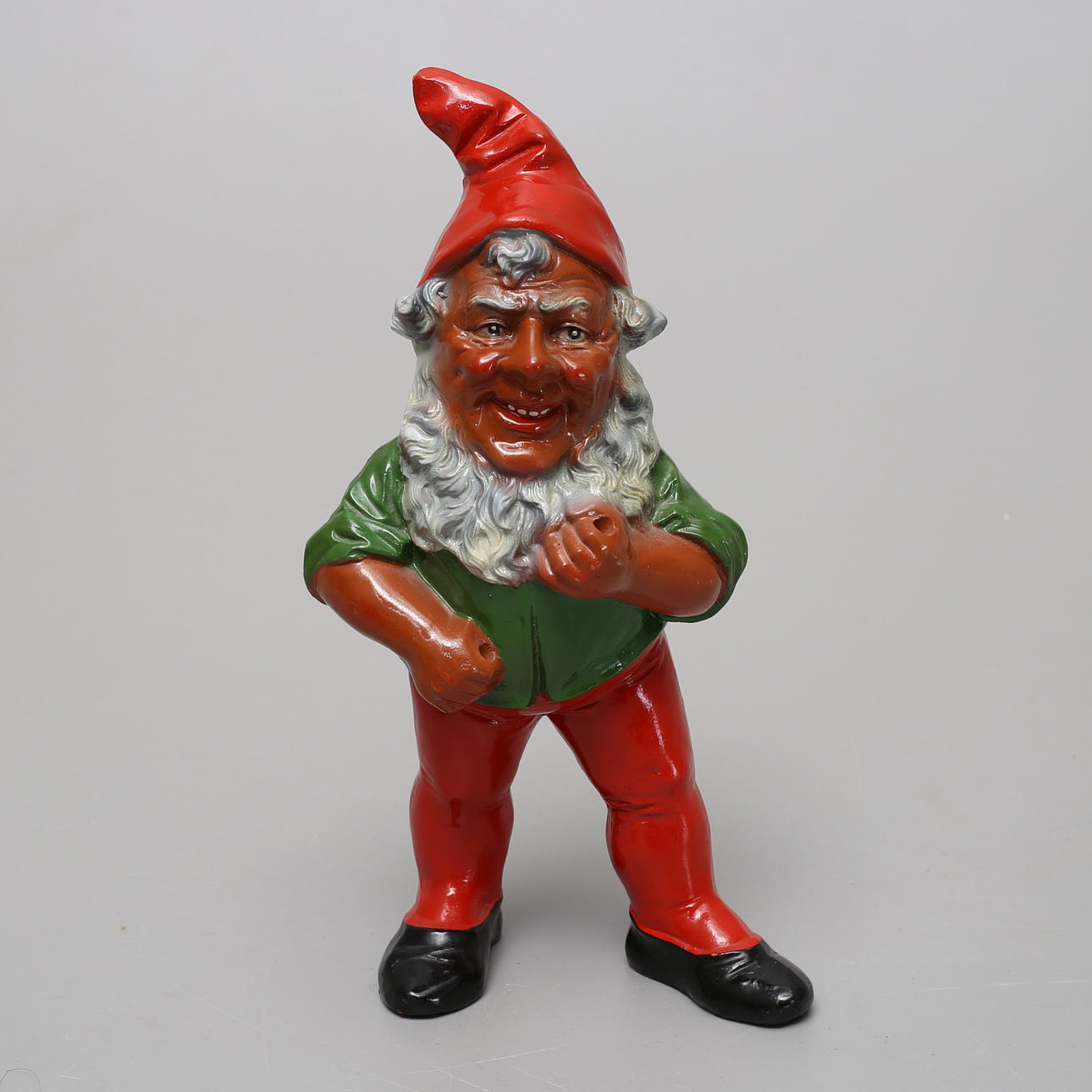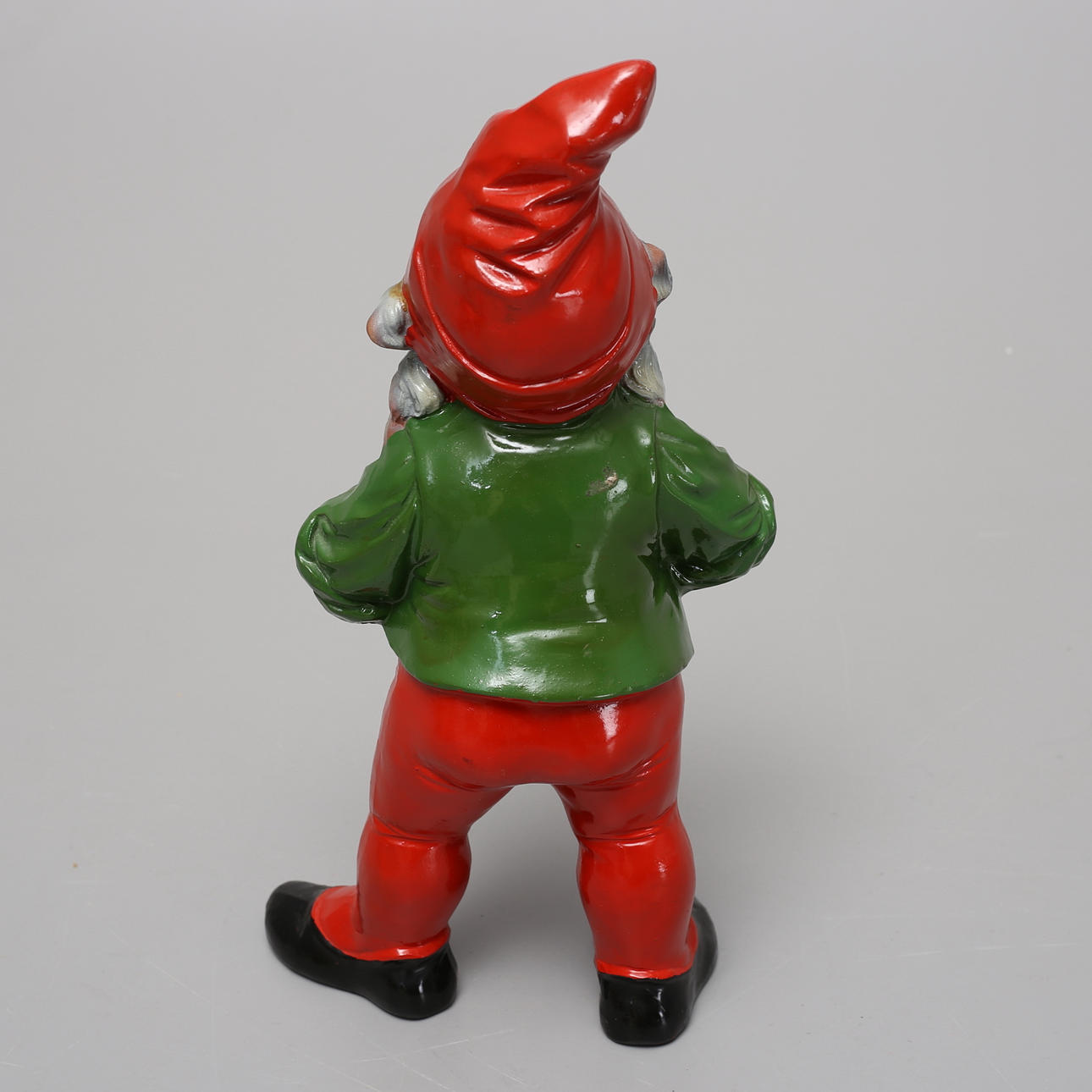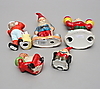 En ljusstake med brännmärke och stearinspill, del till största tomten saknas, ett par tomtar med färgskav.