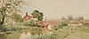 Engelskt bylandskap. Signerad J Knowles, 21x47 cm.