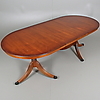 Ovalt bord med hjultrissor, längd 160, bredd 101, höjd 77 cm. en illägsskiva, längd 54. Totallängd 194 cm.