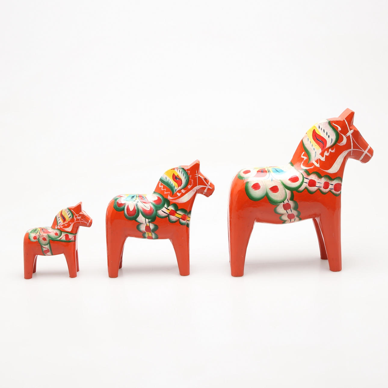 Träskuren och bemålad Dalahäst, höjd 10 cm Dalahäst, ettikettmärkt Äkta Dalahemslöjd FilipS, Orsa, höjd 15 cm Dalahäst, 21 cm.
