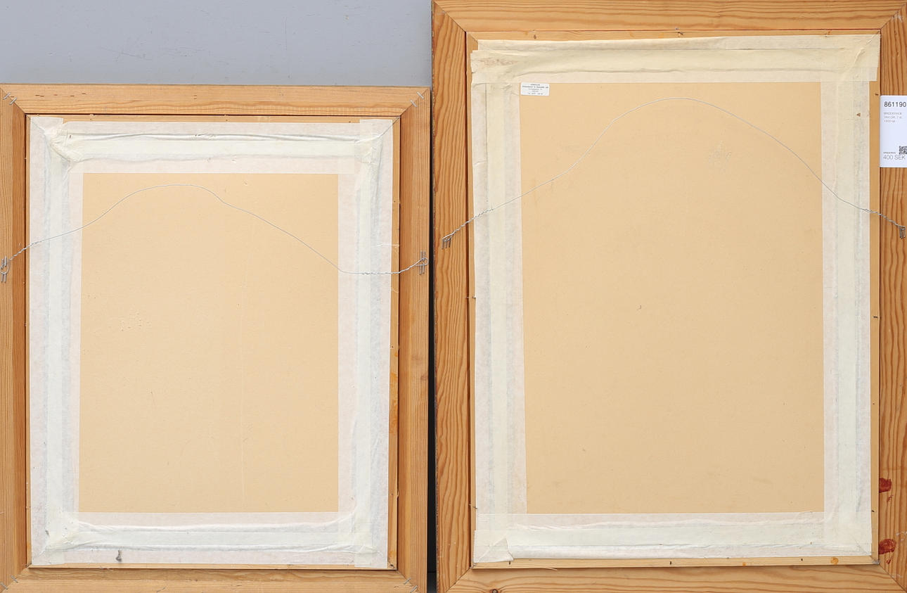 Mått inklusive ram; 64 x 54 och 75 x 59 cm.