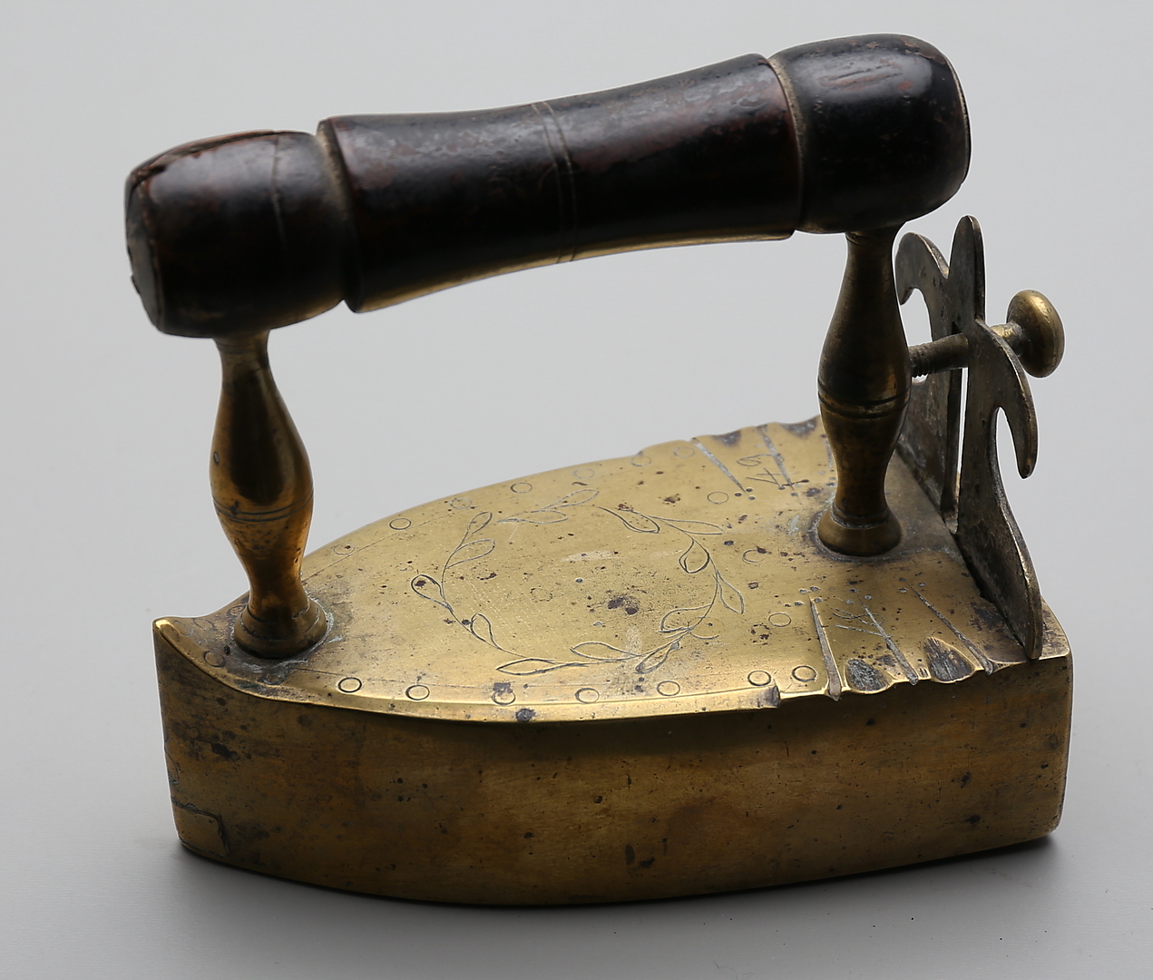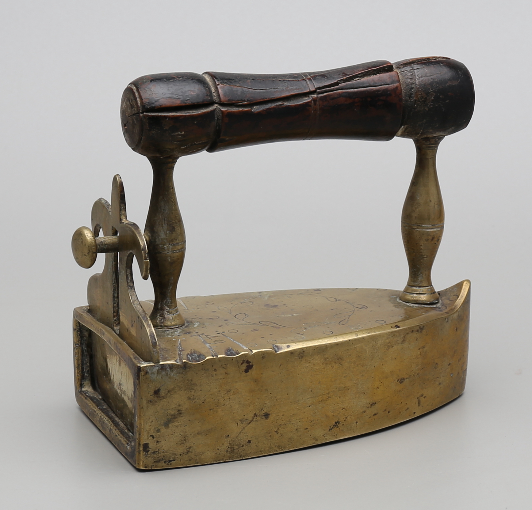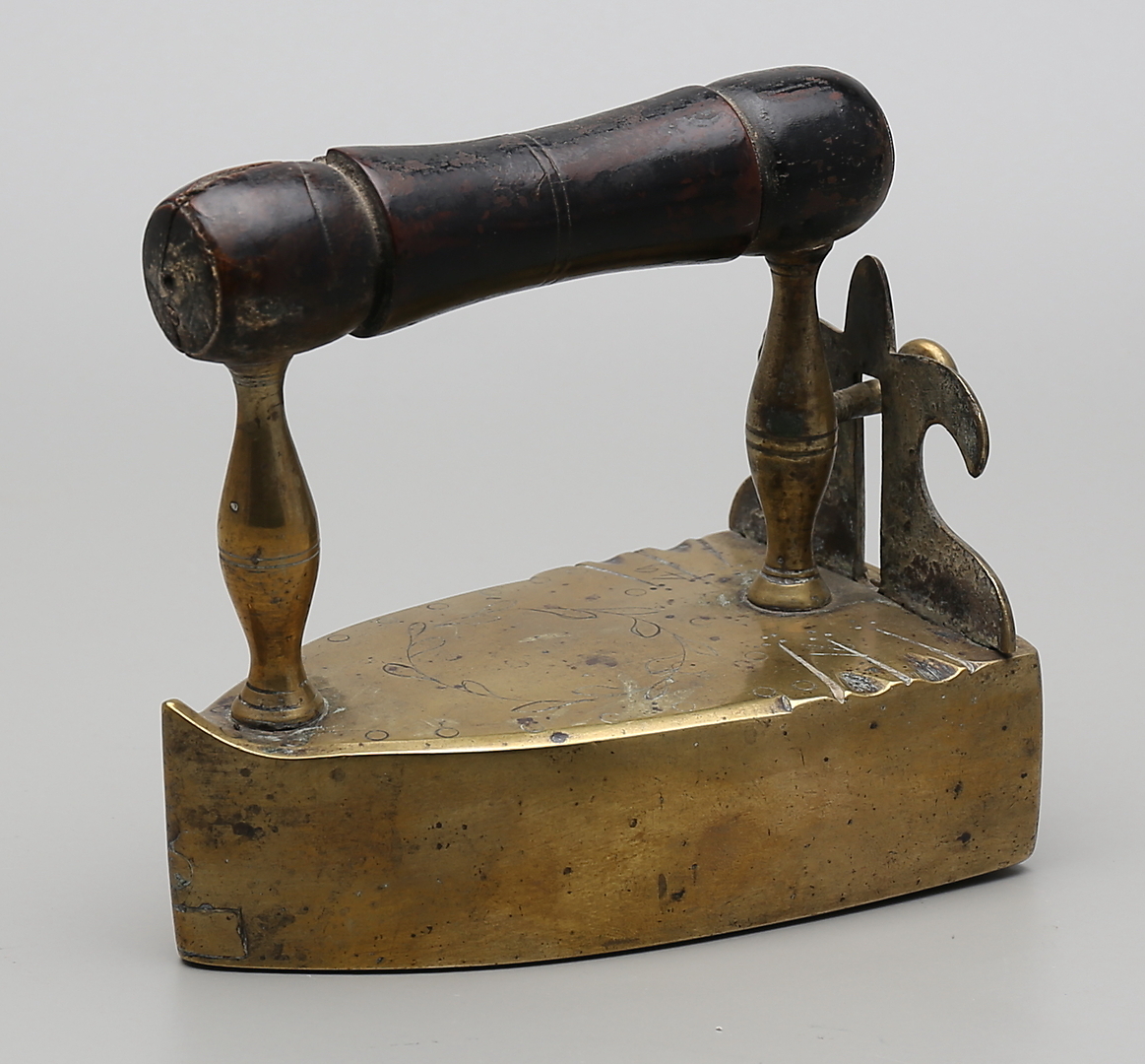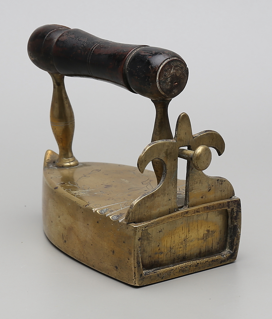 86133. STRYKJÄRN, mässing, daterat 1849.