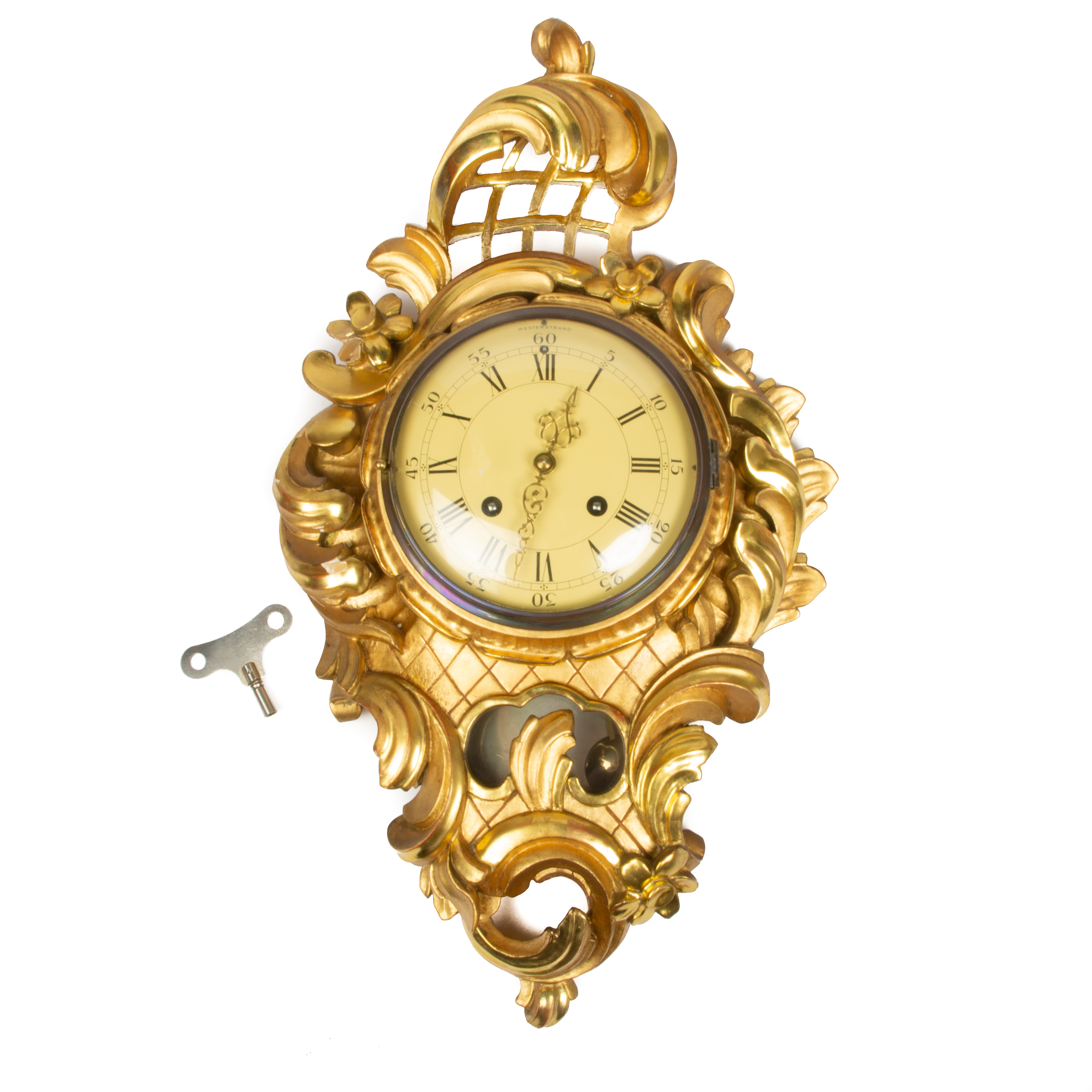 861776. VÄGGPENDYL, förgylld, Westerstrand, rokokostil.