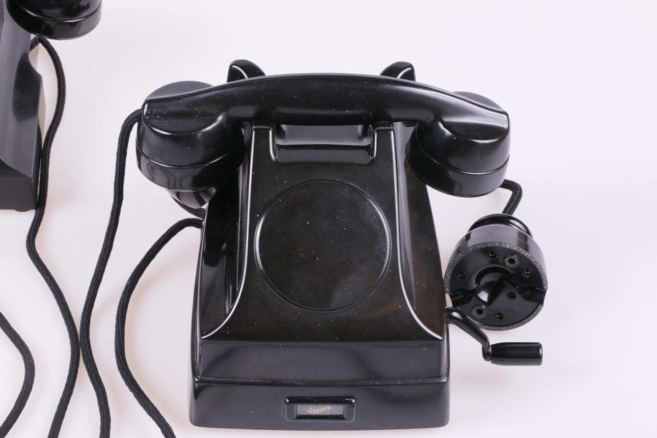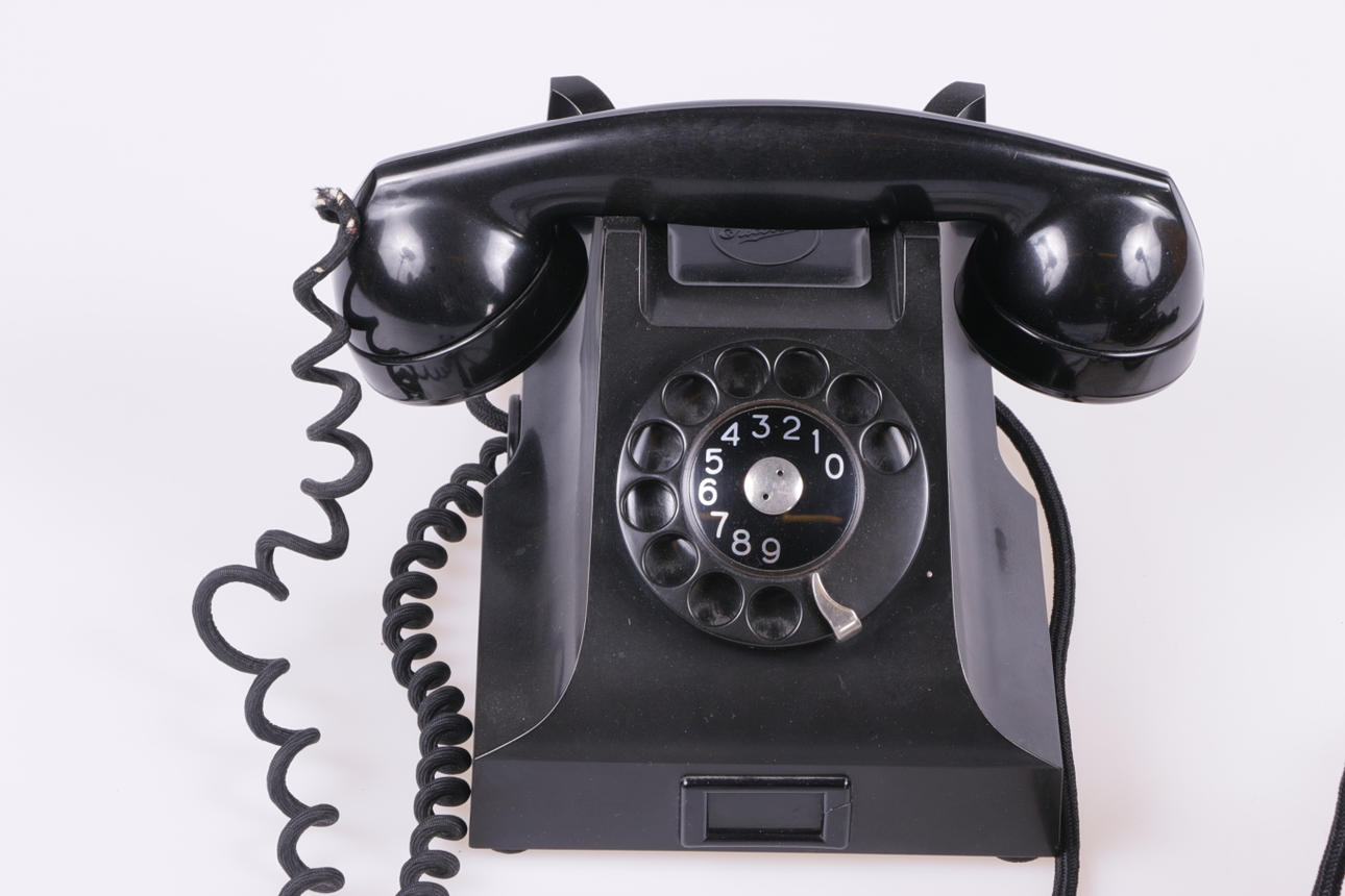 Bakelittelefon med nummerskiva, "svensk standardtelefon" 1931-47.