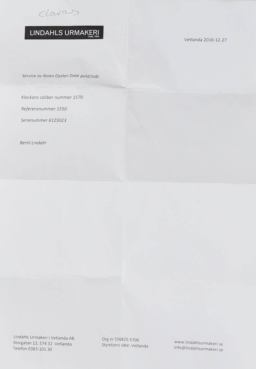 Senaste service inklusive trycktest 2016-12-27, medföljande papper.