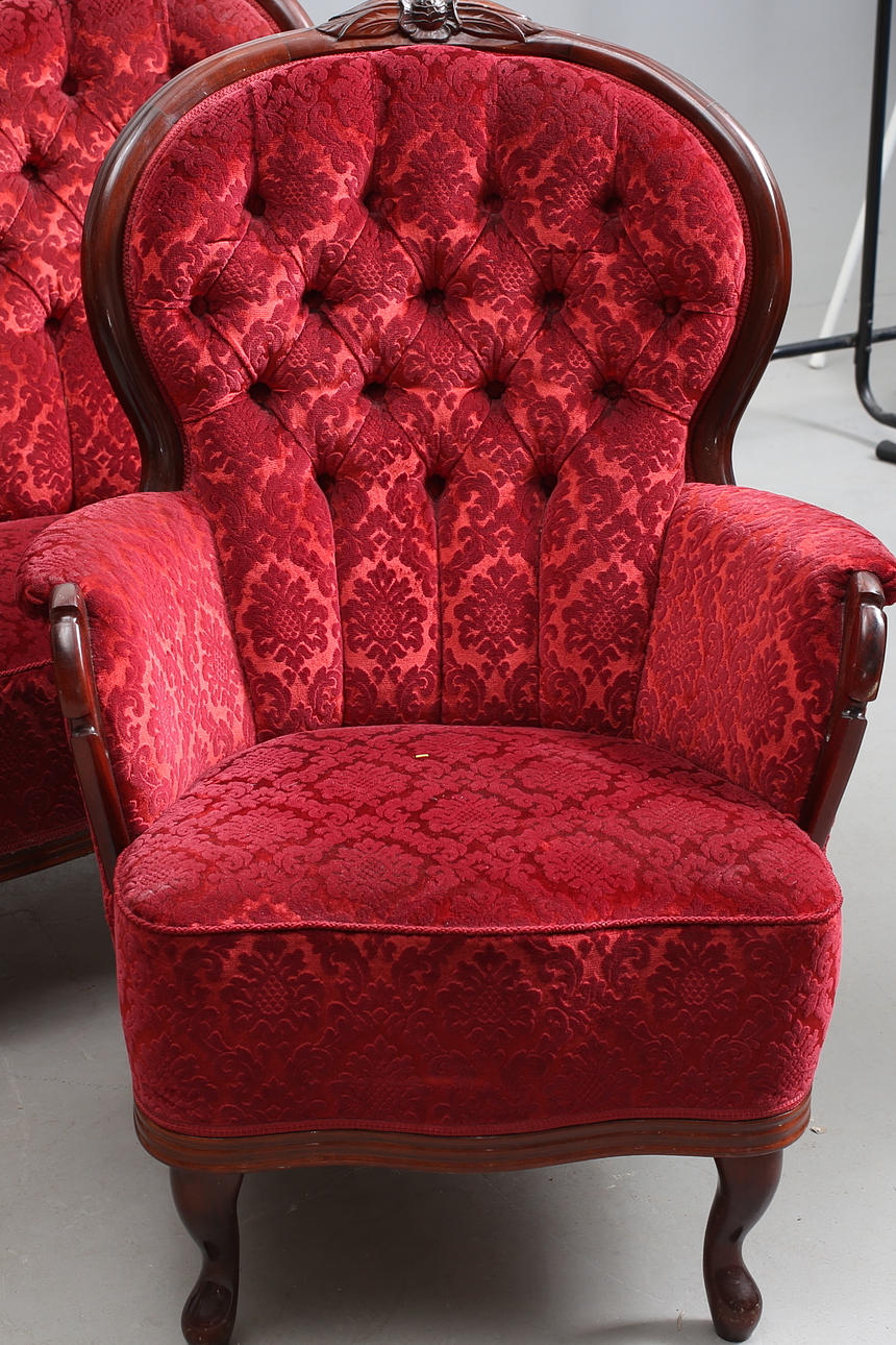 SOFFGRUPP, nyrokoko, röd plysch.