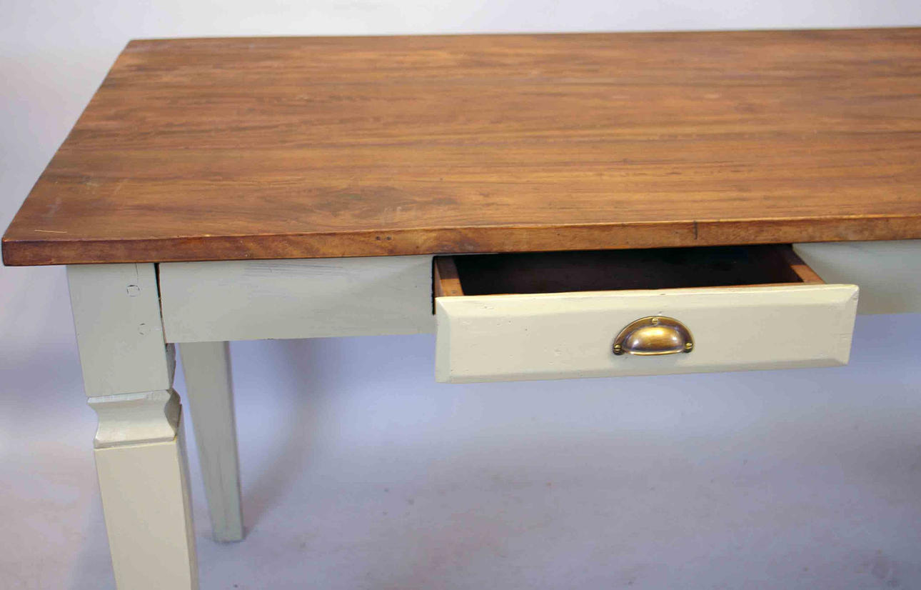 MATBORD med lådor, gråmålat underrede.