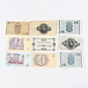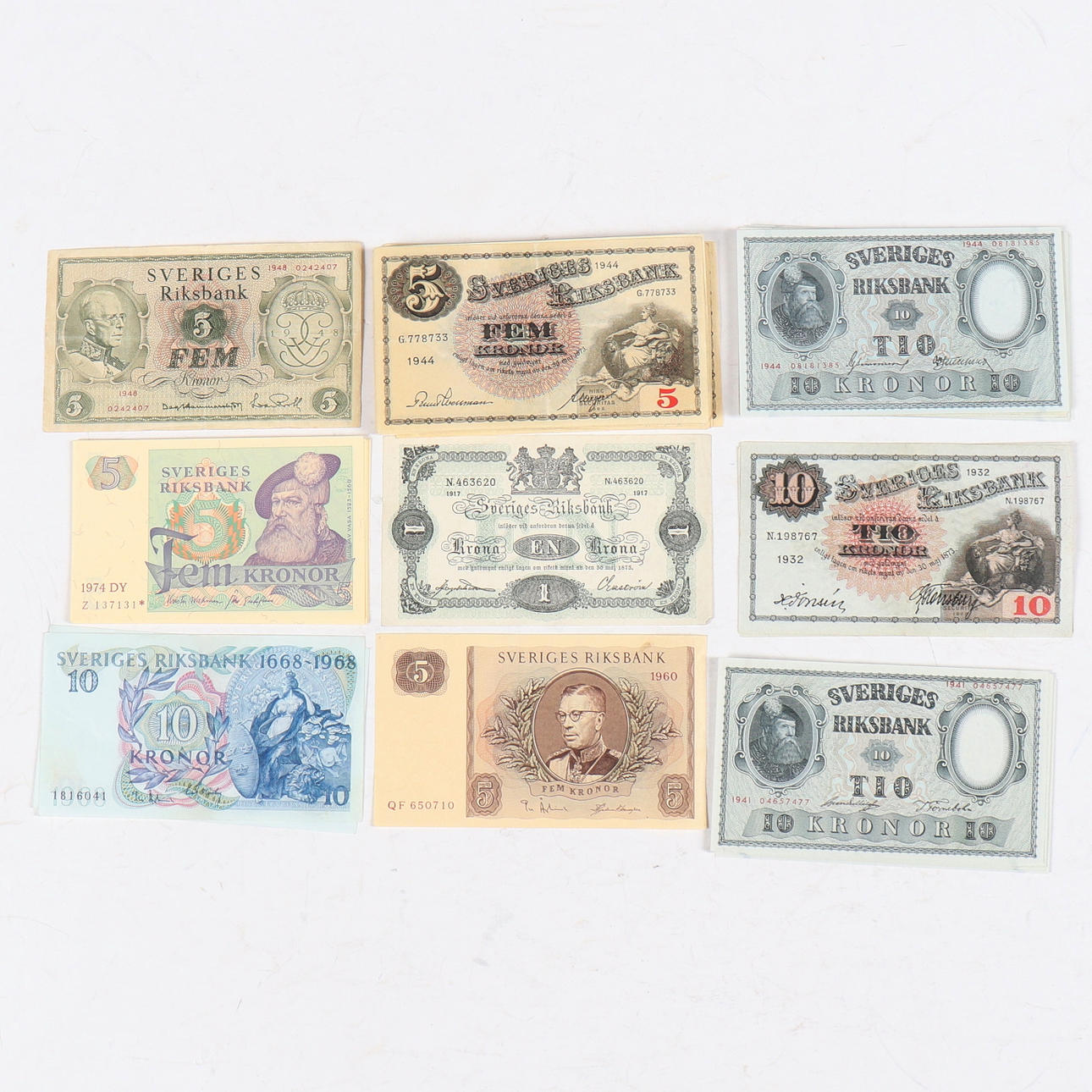 Gott skick på samtliga sedlar, enstaka gulnade samt med tumveck/veck.