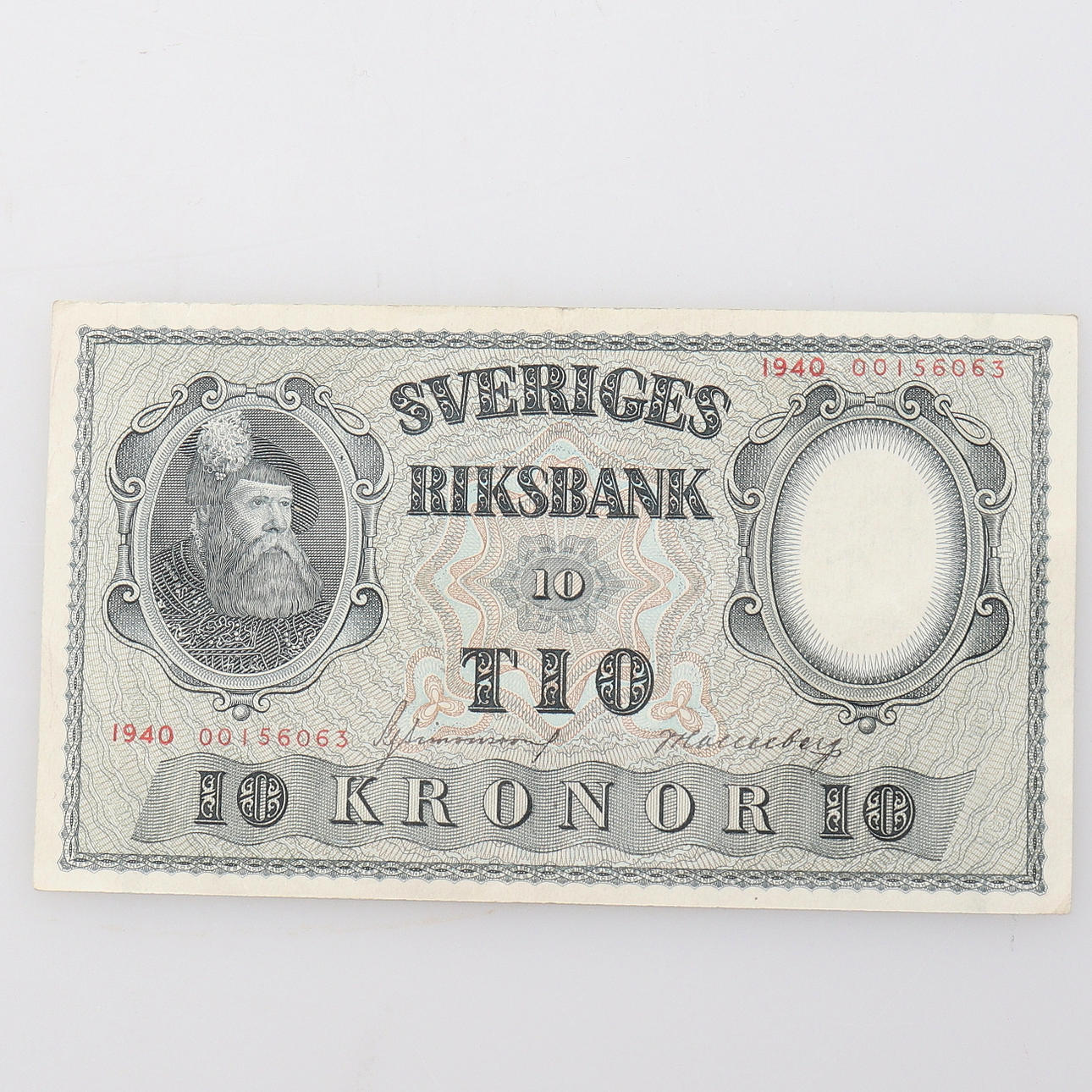 19st 10-kr, 1940 - 1945, vikt/ovikta, 1 st 1940 vikt, varav 4 par i nummerföljd, 2 par 1944, 1 par 1941, 1 par 1945.
