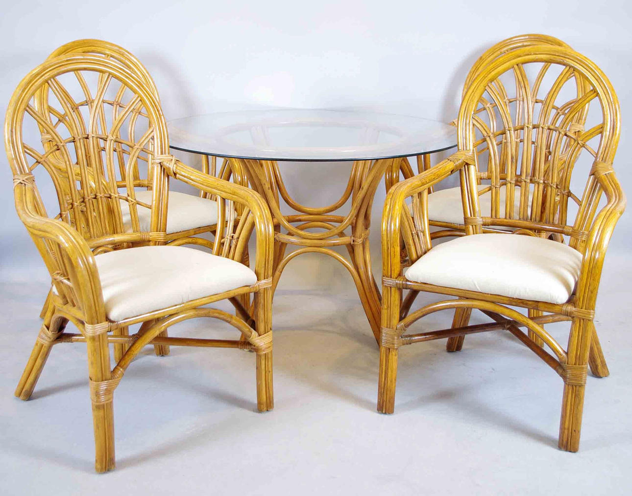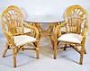 4 karmstolar samt bord, bordets höjd 70, diameter 106 cm.