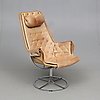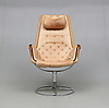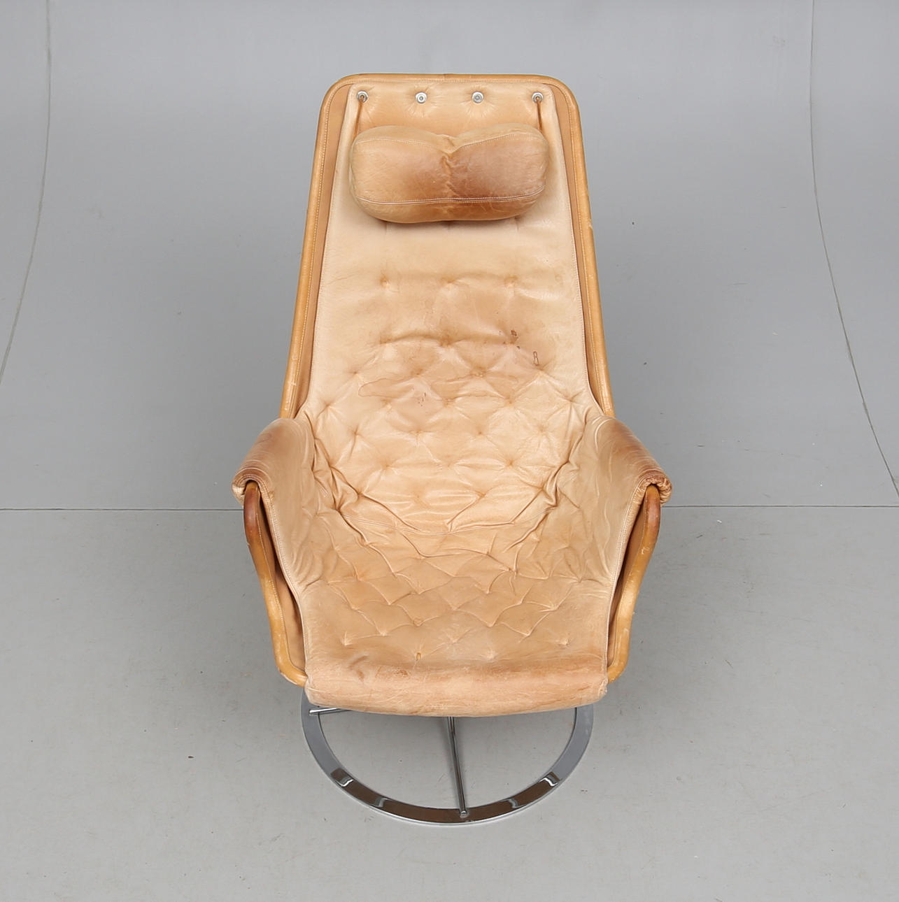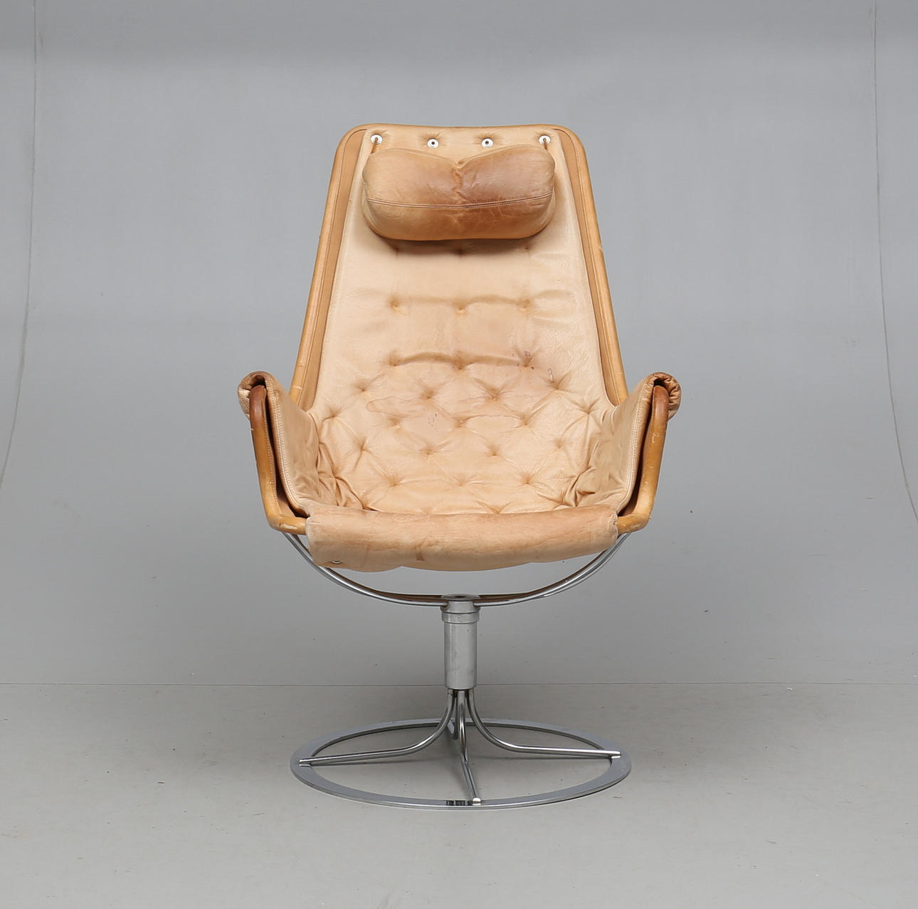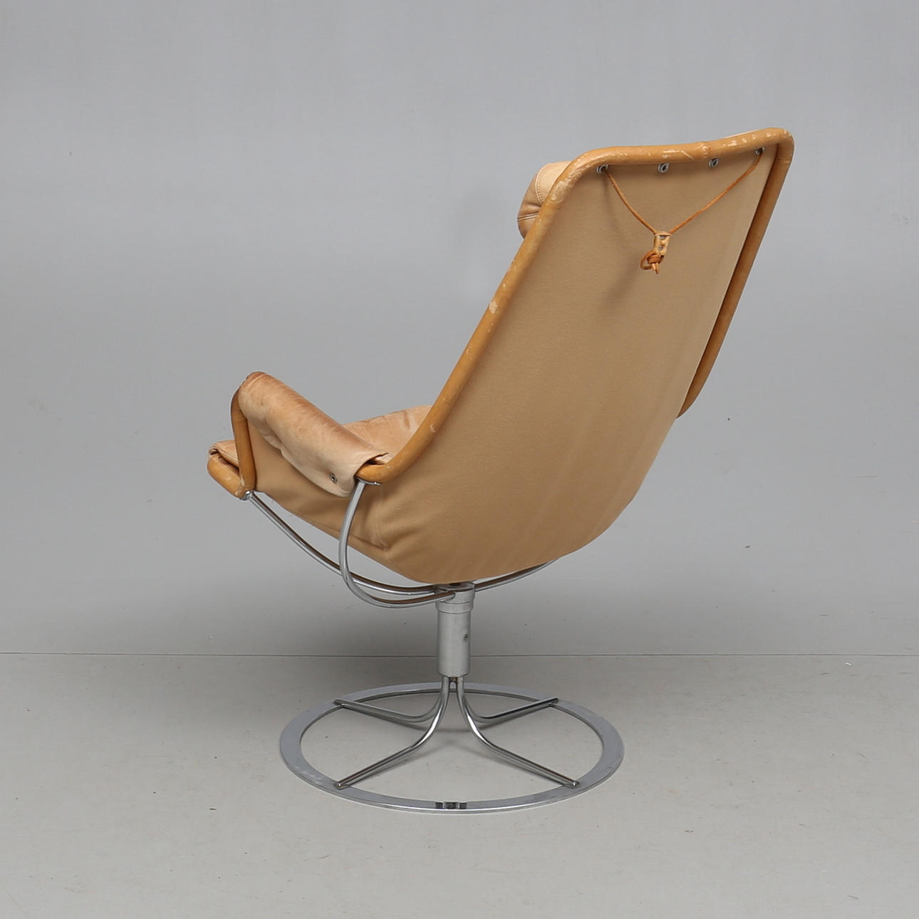 Benställning av kromad metall. Klädsel av skinn. Lös nackkudde.