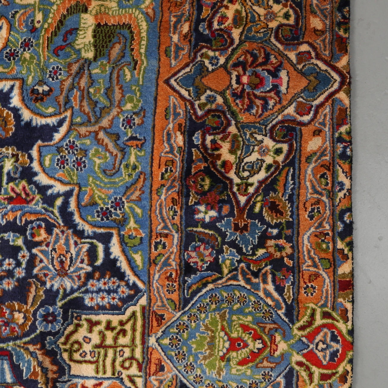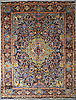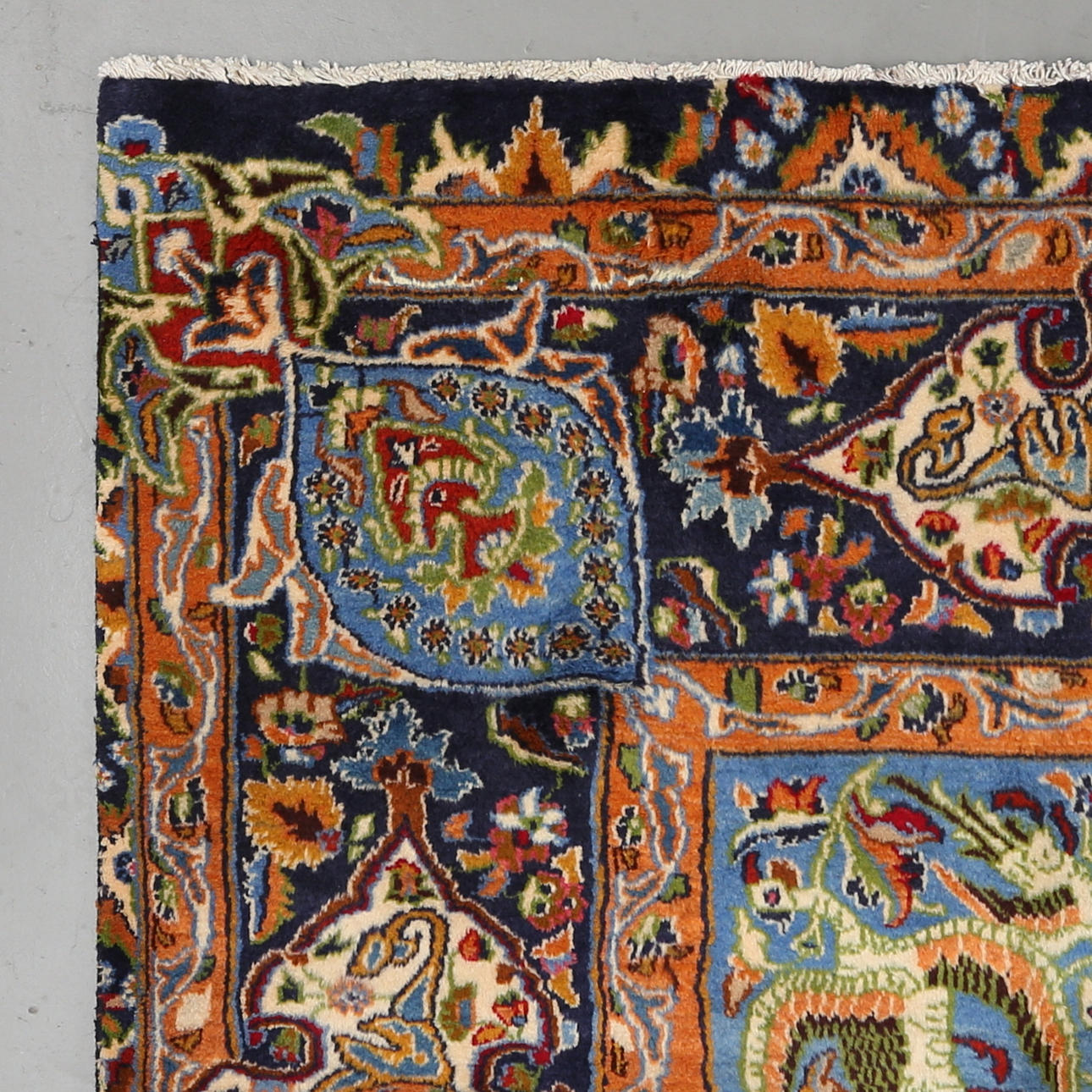 Handknuten persisk matta i ull på bomullsvarp, Kashmar. Medaljongmönster i bred färgskala på botten med mönster av vaser.