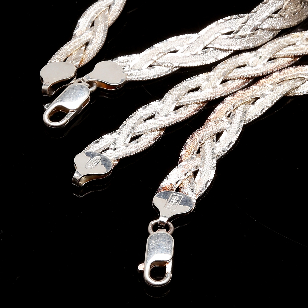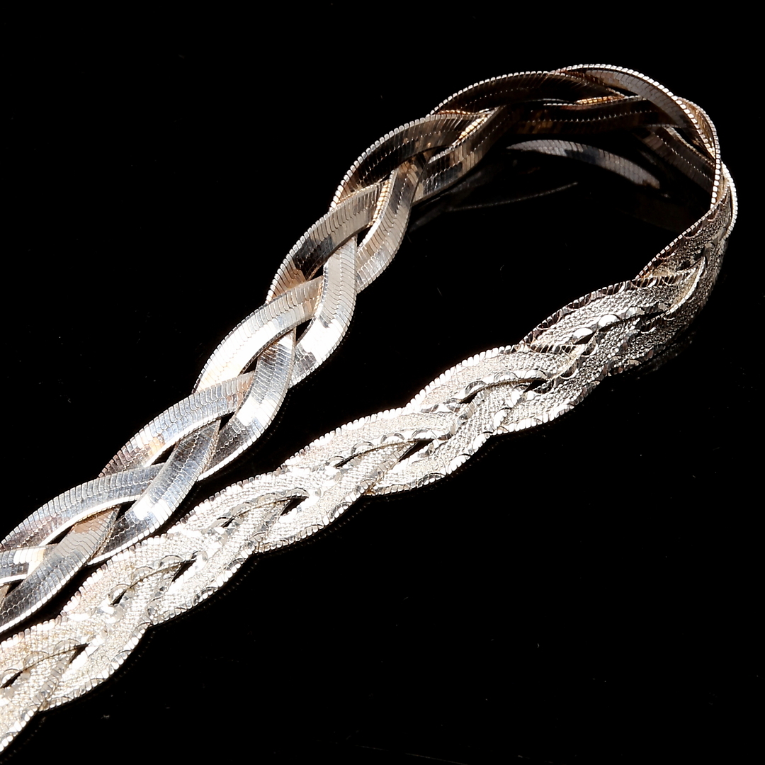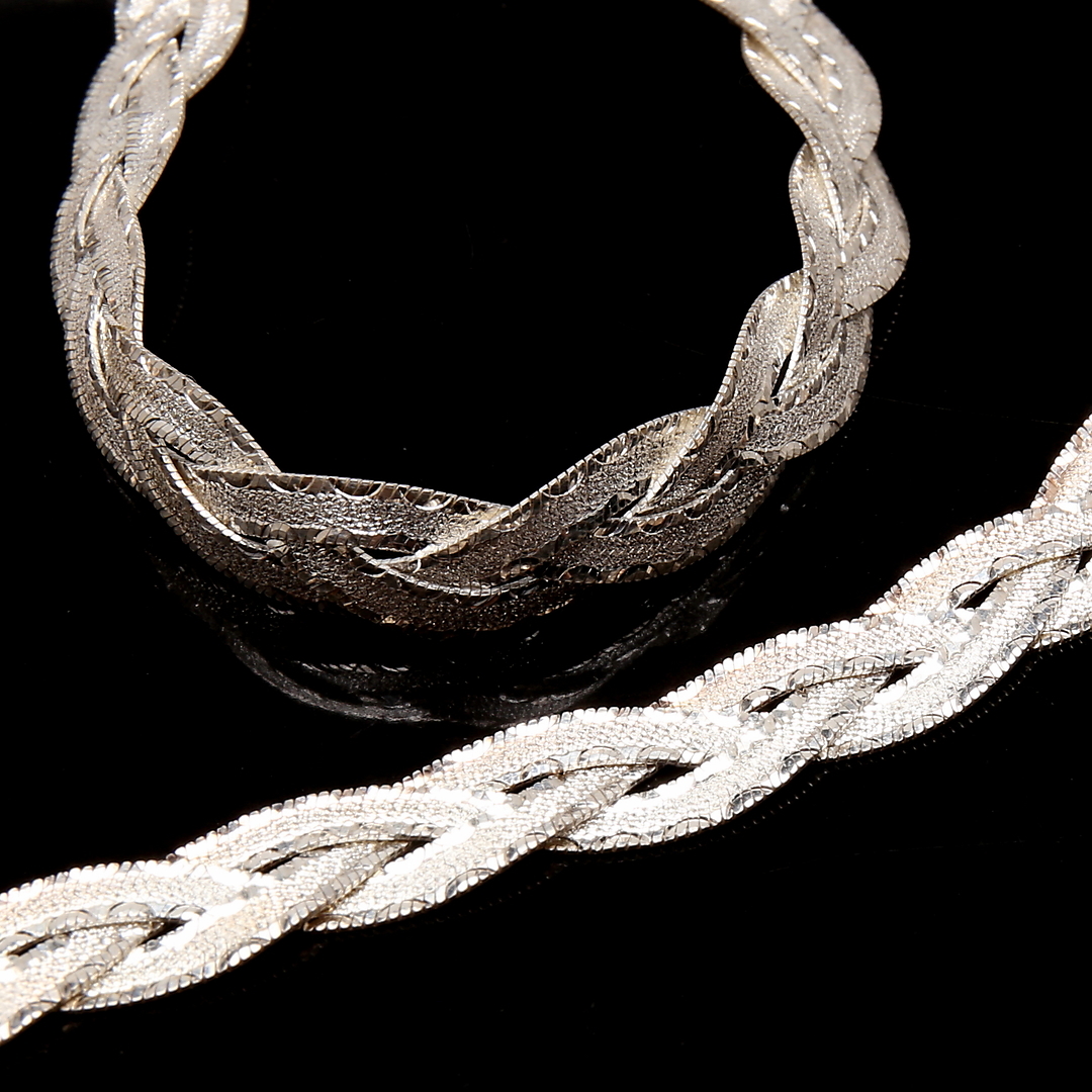 876929. HALSBAND & ARMBAND 925 silver, flätat.