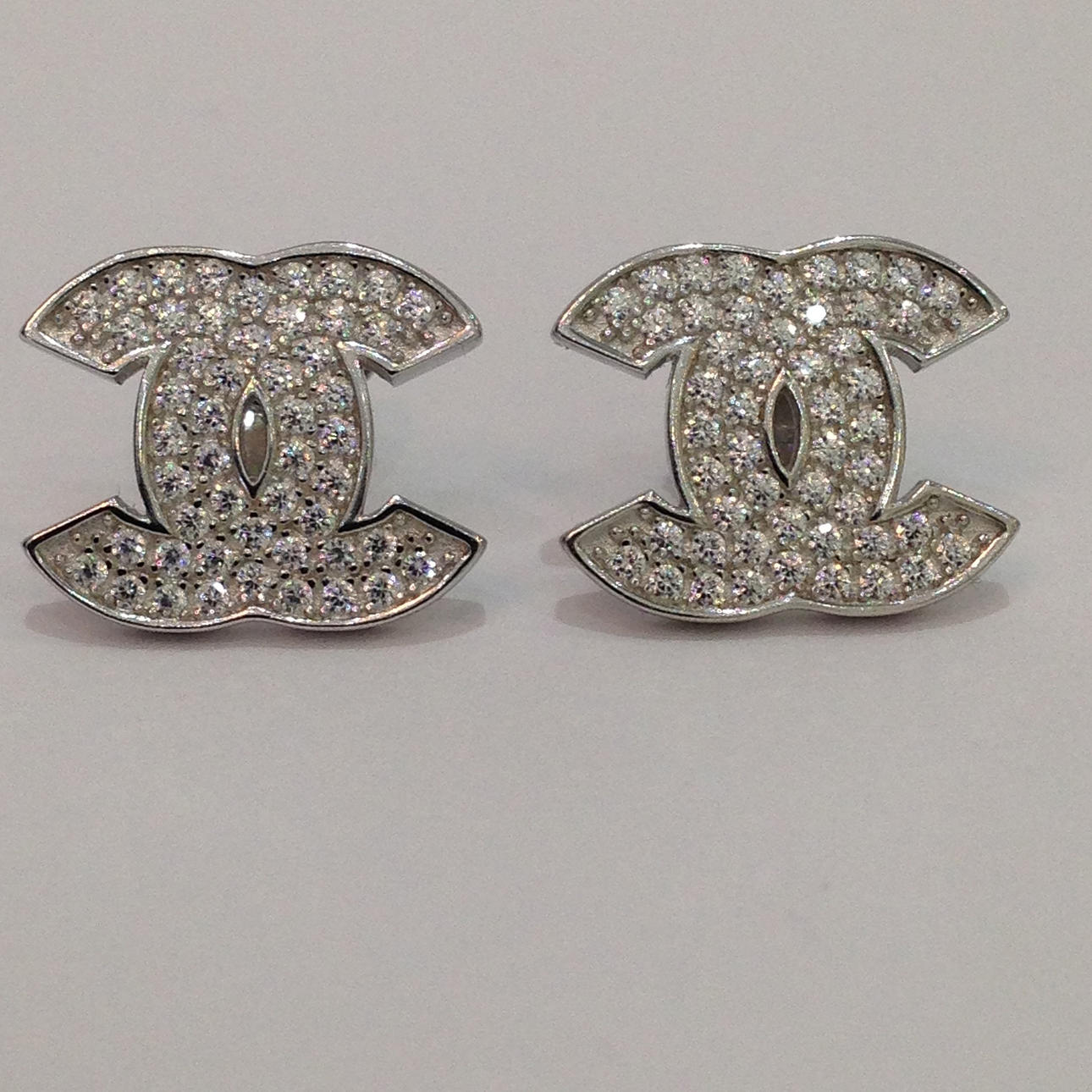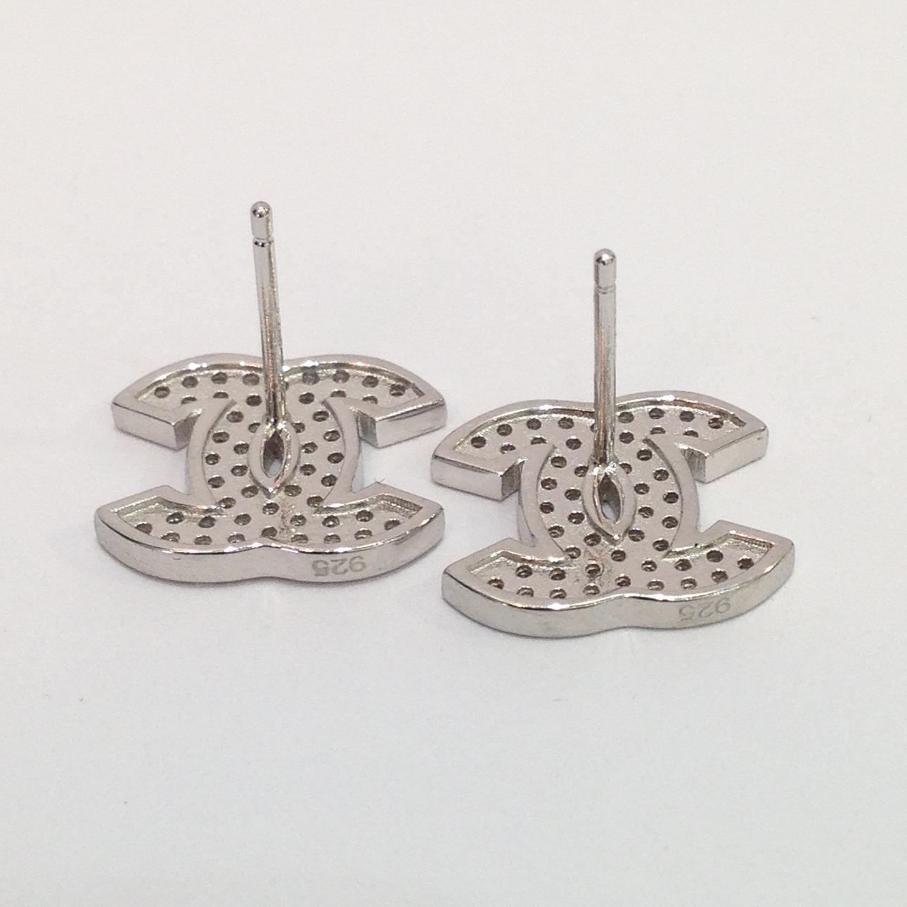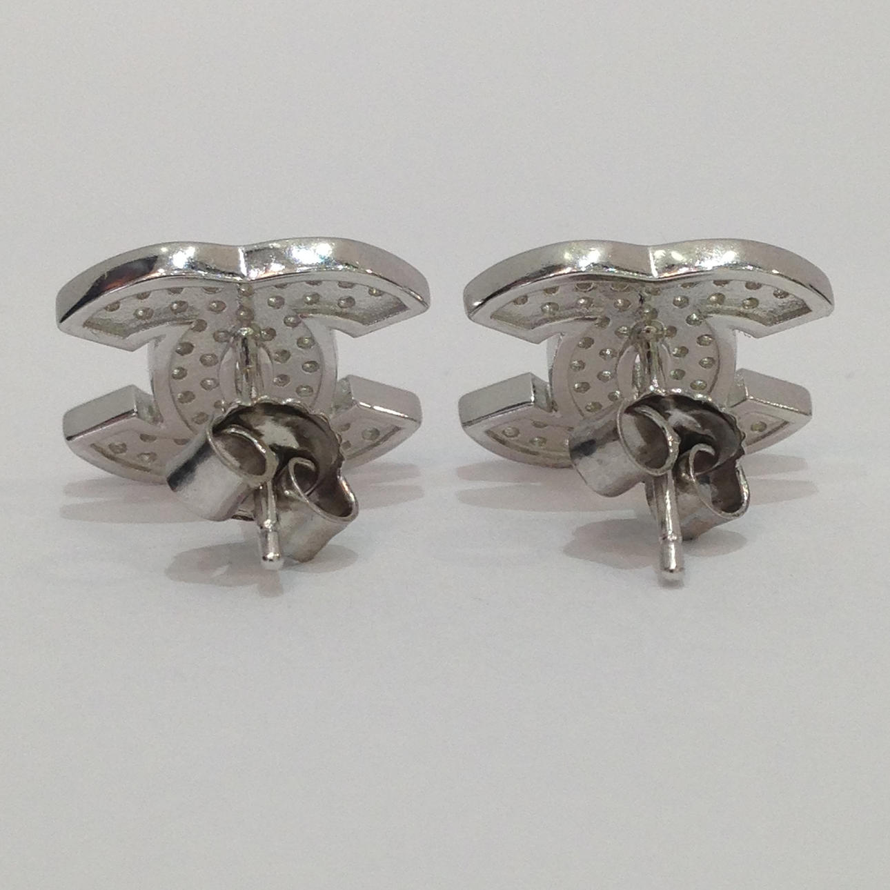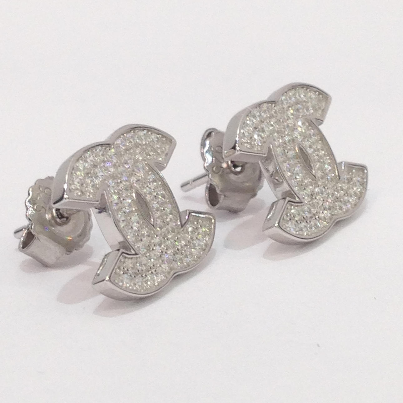 Varje stud örhänge är i form av till C: s rygg mot rygg och är inställd med vita runda briljantskurna cubic zirconia stenar.