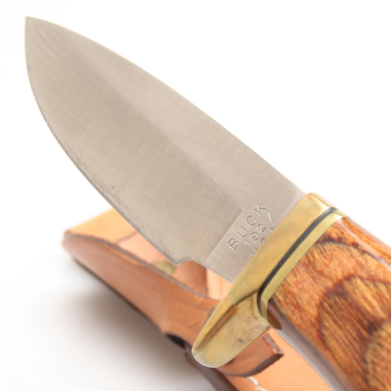 med läderhölster, märkt BUCK 192 USA, längd 24 cm inklusive hölster.