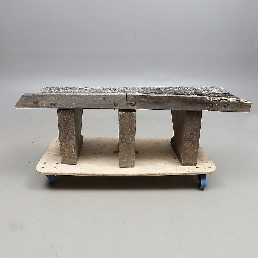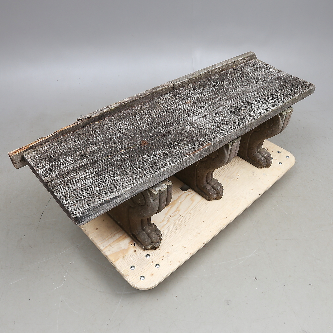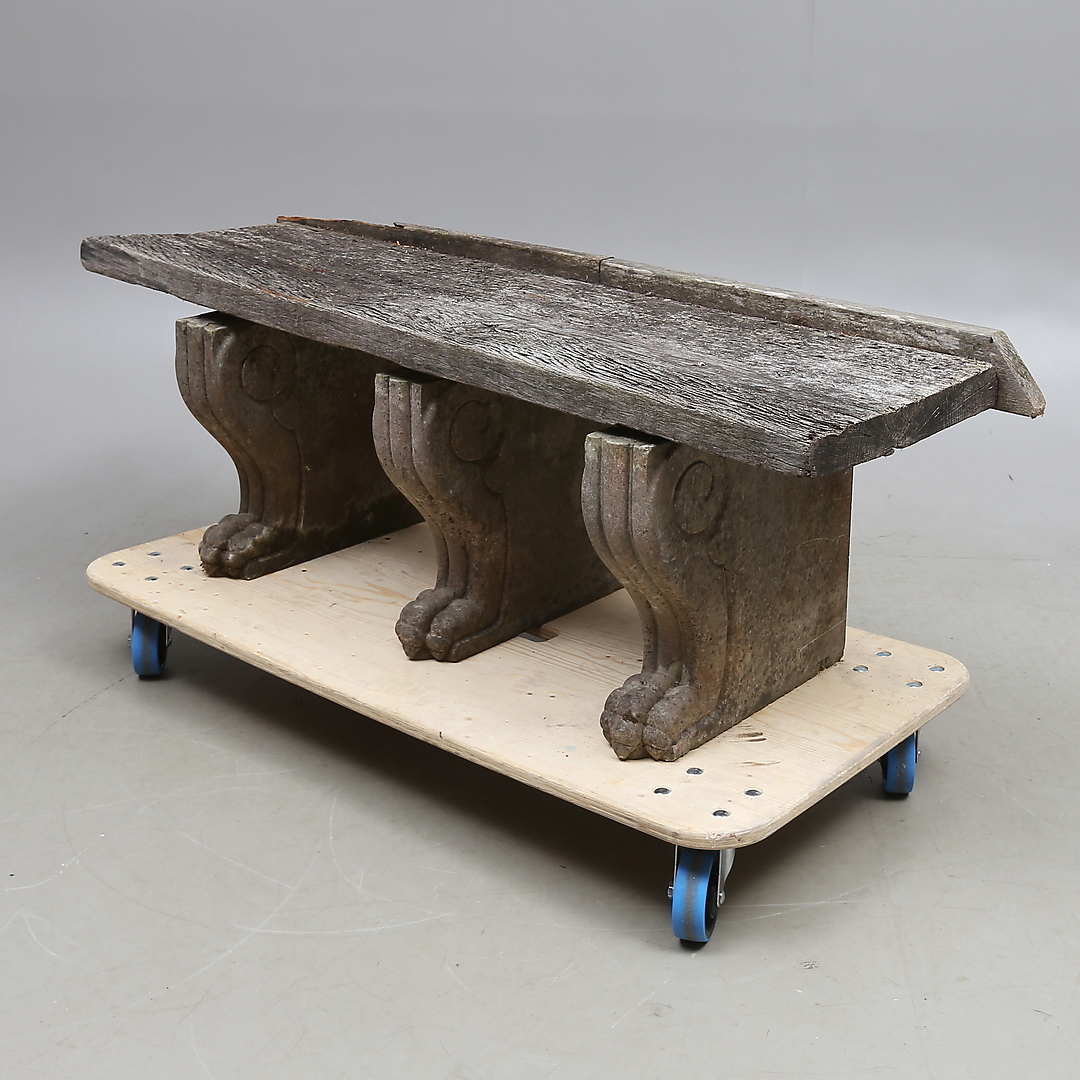 882568. TRÄDGÅRDSBÄNK, sten och trä.