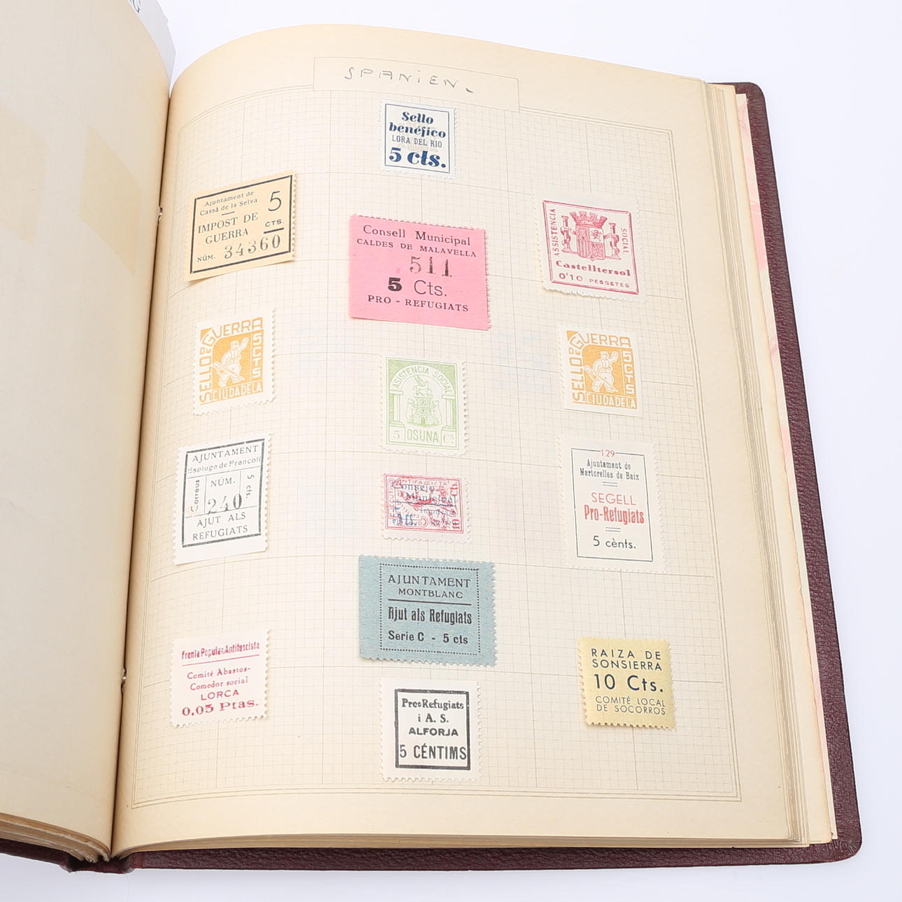 Monterad i 5 stycken album samt 2 stycken urvalshäften, begagnat och obegagnat, bland annat Spanien från 1930-talet.