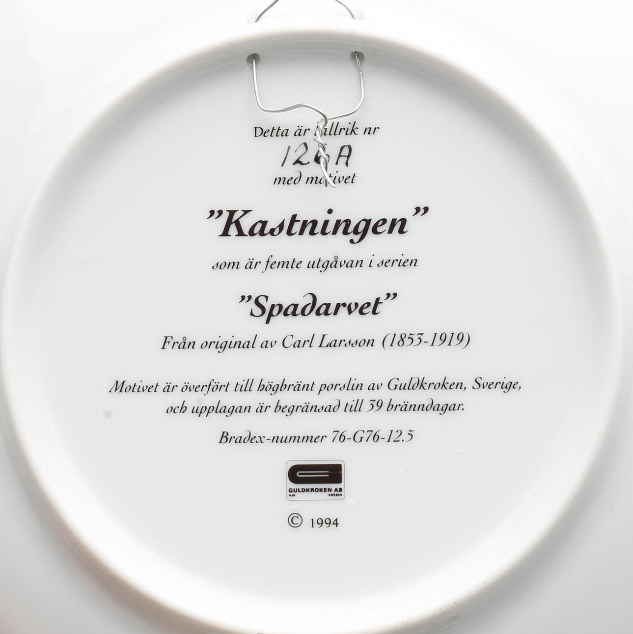 1 tallrik, ur serien "Carl Larsson i Frankrike", Rörstrand, diameter, 20 cm.