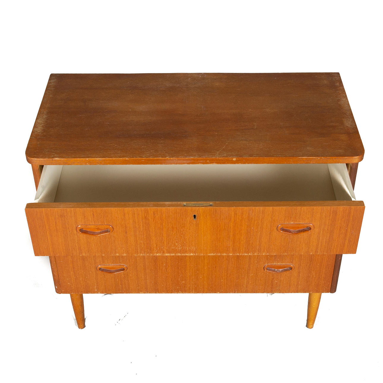 891128. BYRÅ, 3-lådig, teak, 1900-talets mitt.