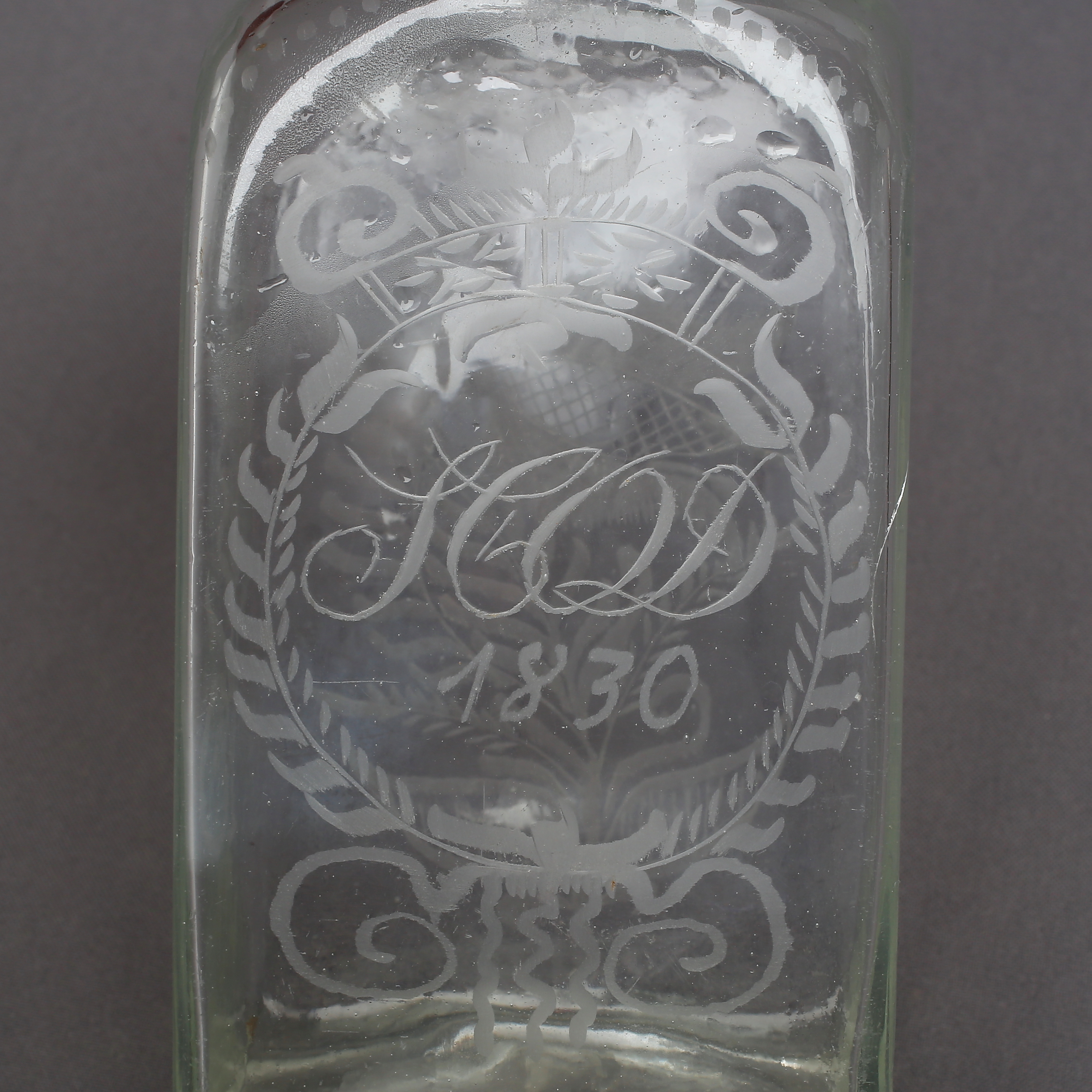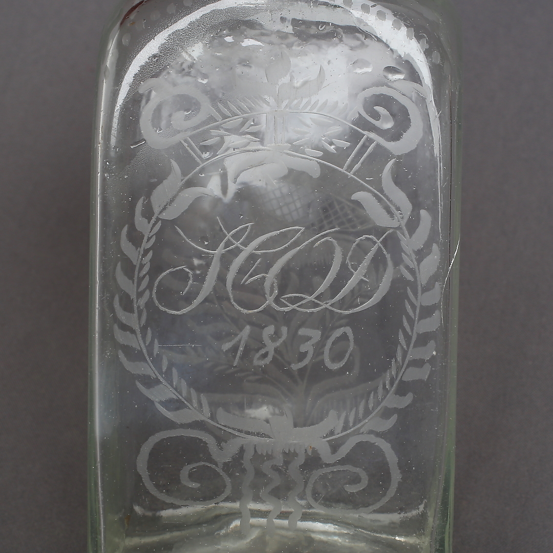 894026. PLUNTA, glas, gravyr, daterad 1830.