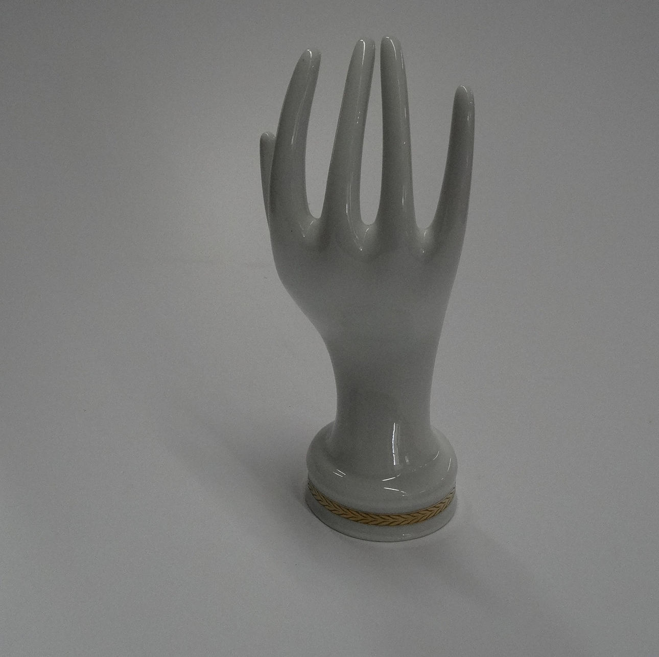 Porslinsfigur som handmotiv för ringar, av Kerafina, ca 20 x 6 x 8,5 cm.
