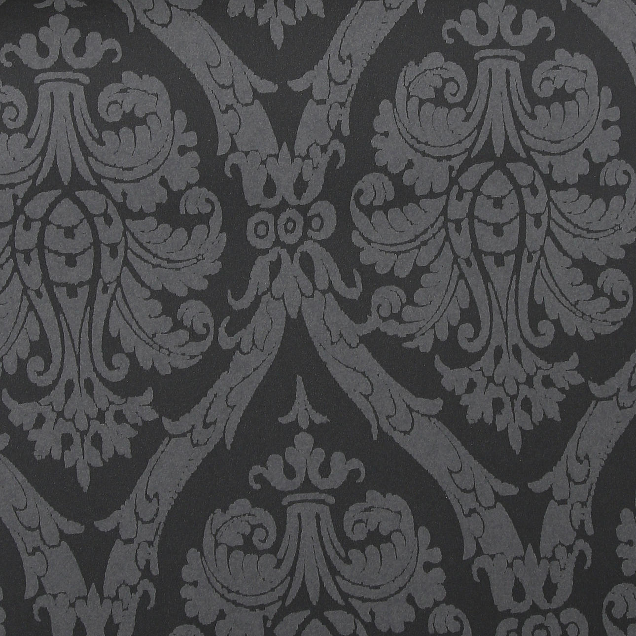 14 rullar lila medaljongmönstrade tapeter samt 2 rullar svarta medljongmönstrade tapeter. Rullmått 11,2 x 0,53 m, mönsterpassning 53 cm.