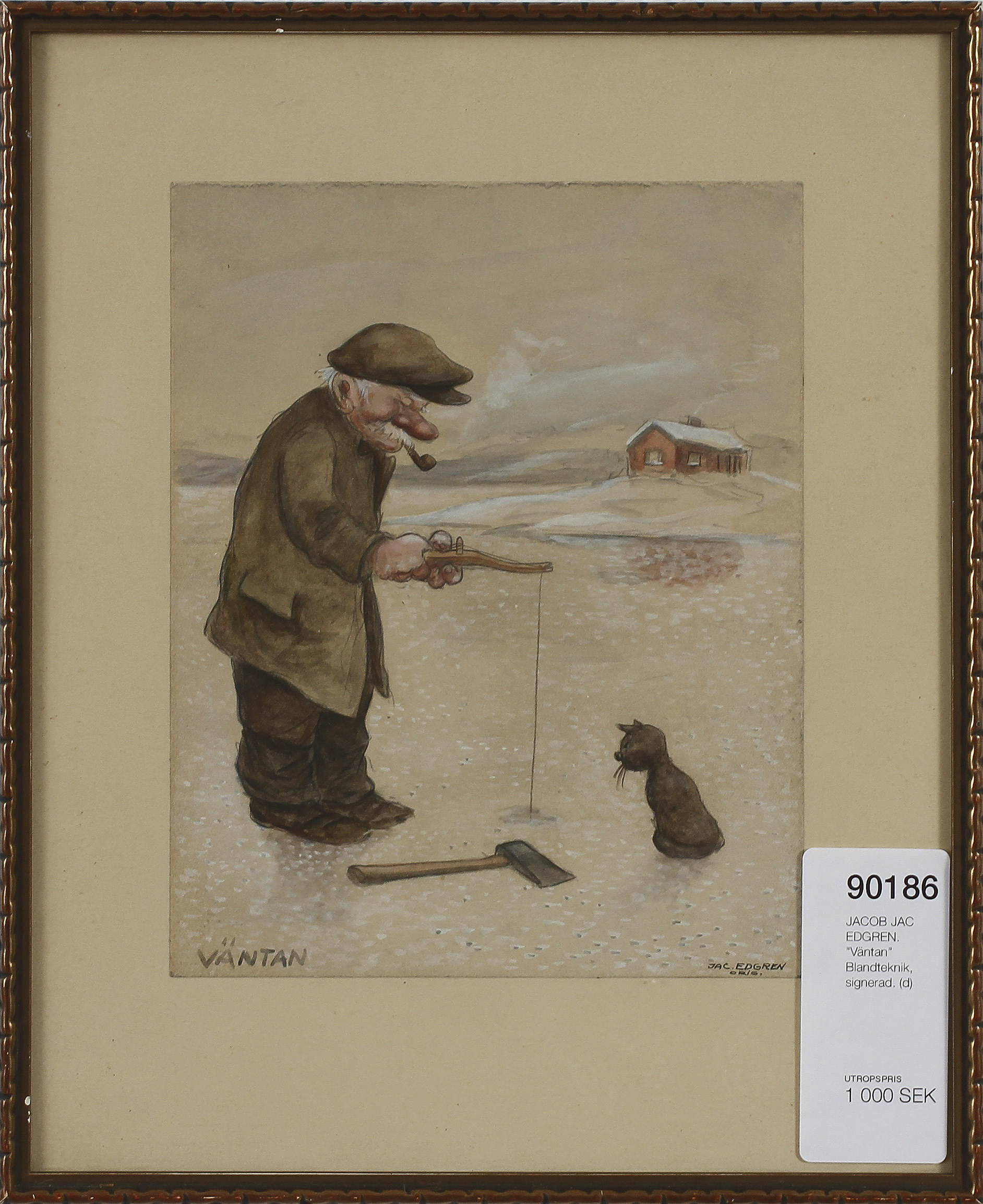 90186. JACOB JAC EDGREN. "Väntan" Blandteknik, signerad.