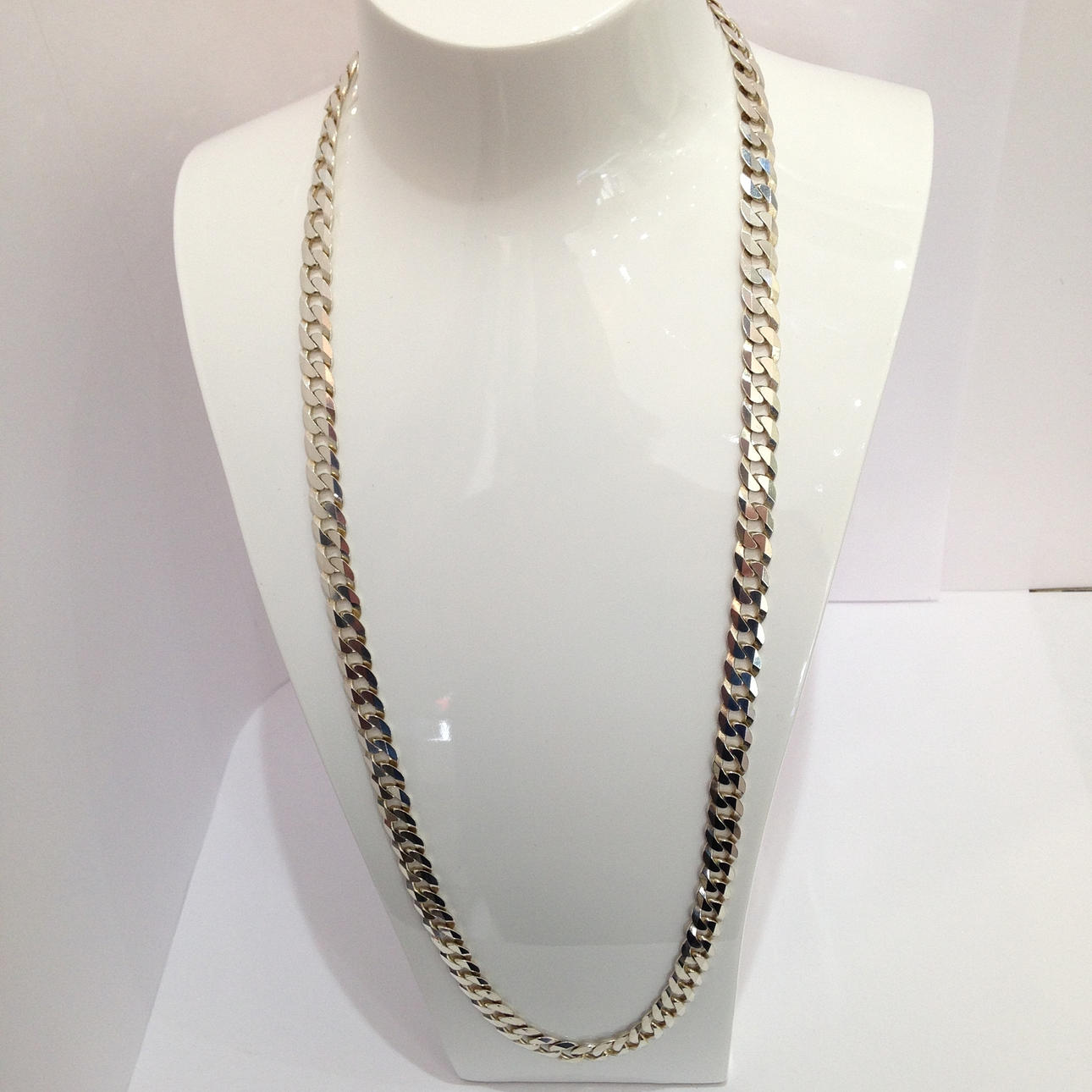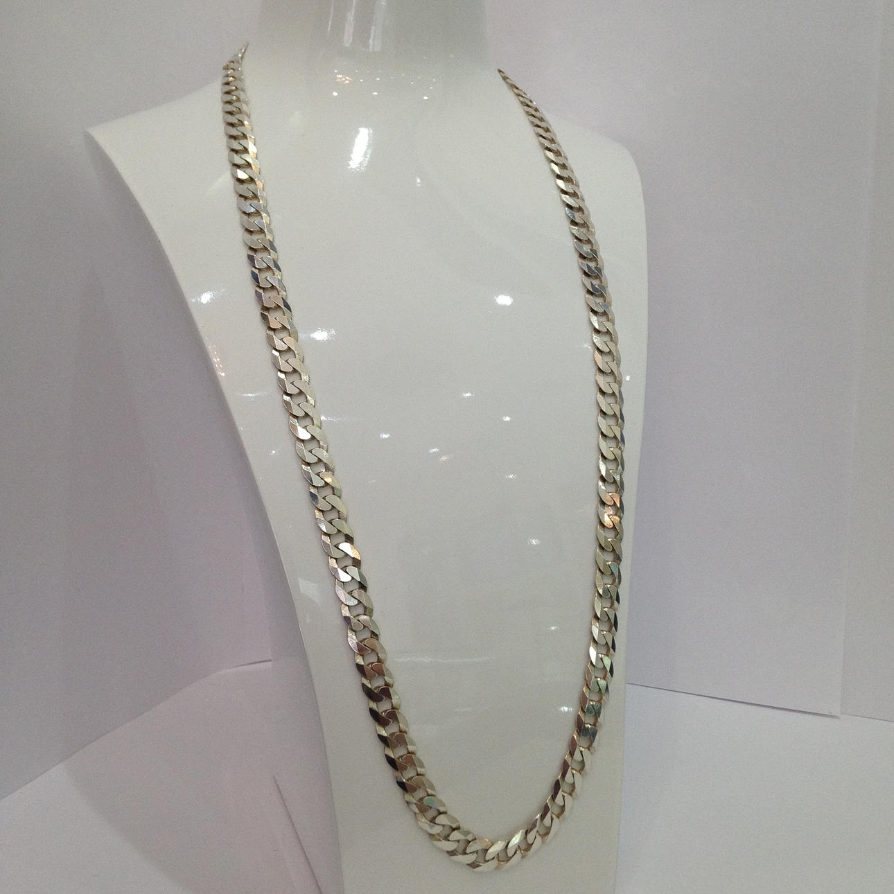 Detta halsband är en tung trottoarkant kedja och mäter 22 inches i längd.