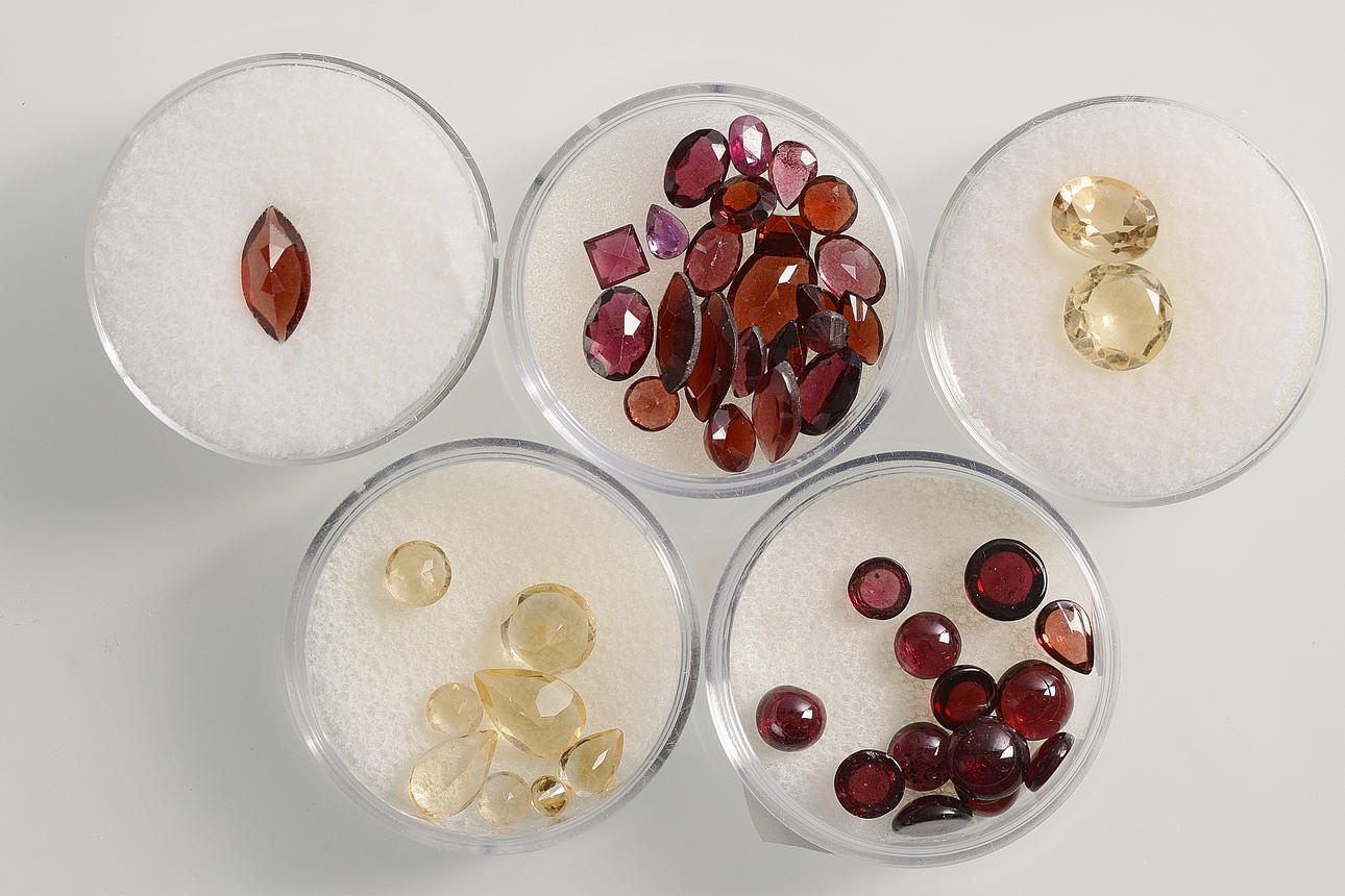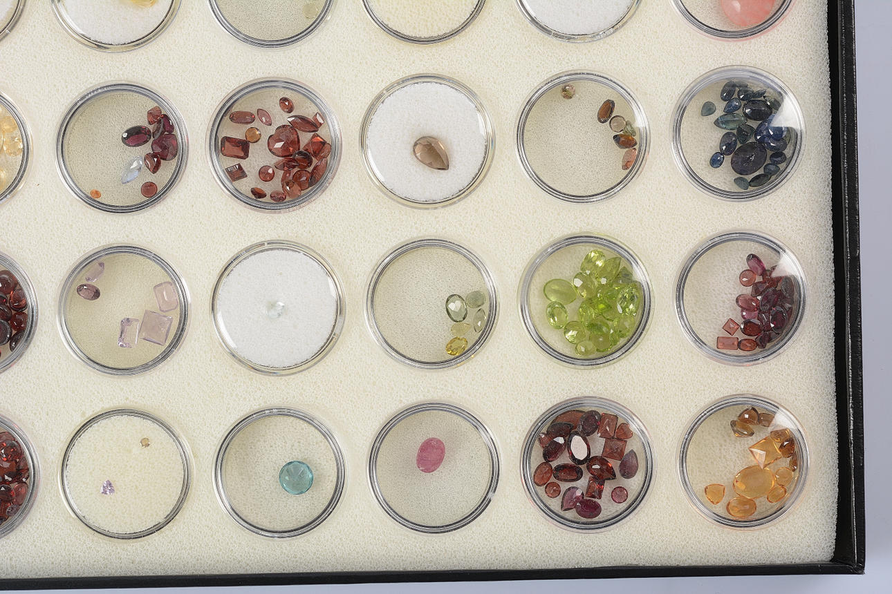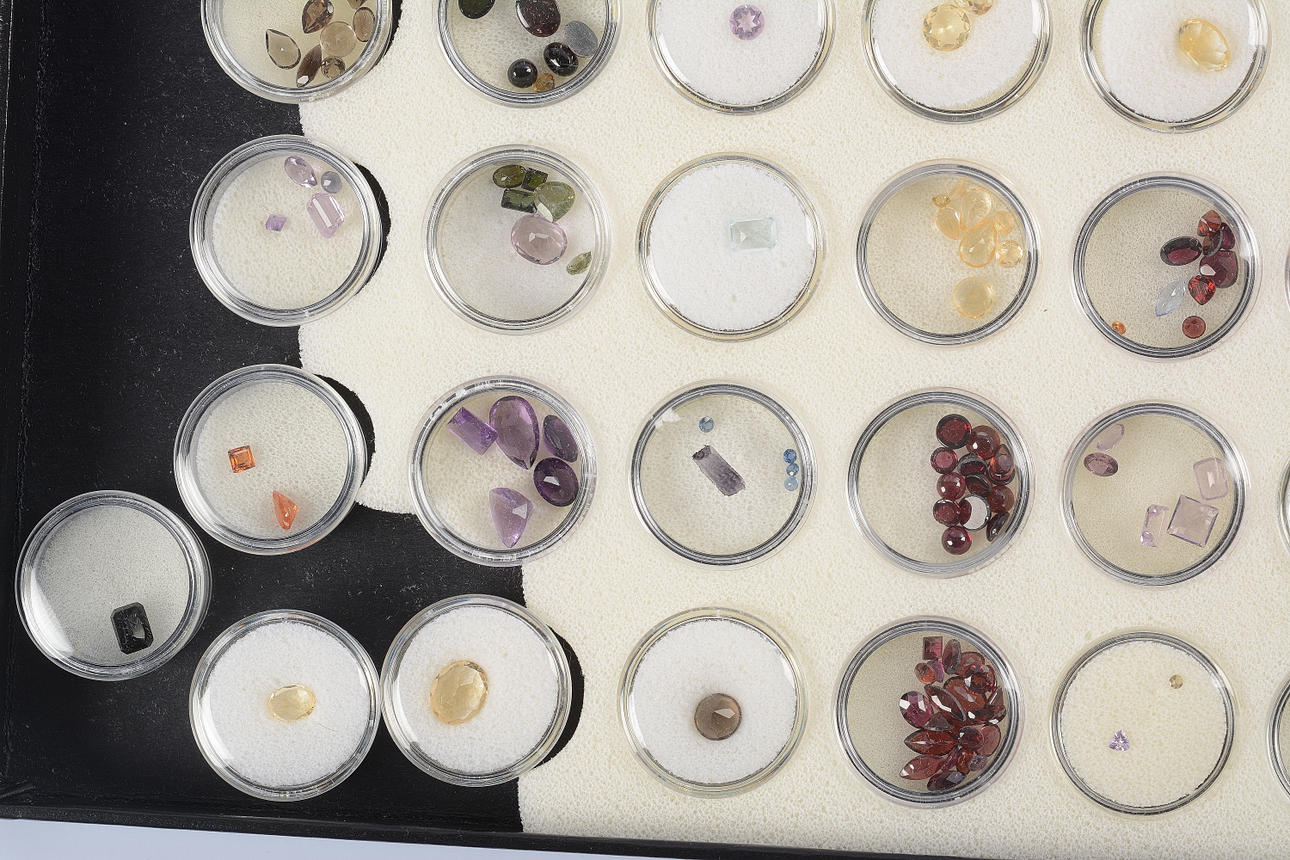 Alamandingranater, ametister, granater, safirer, mfl.