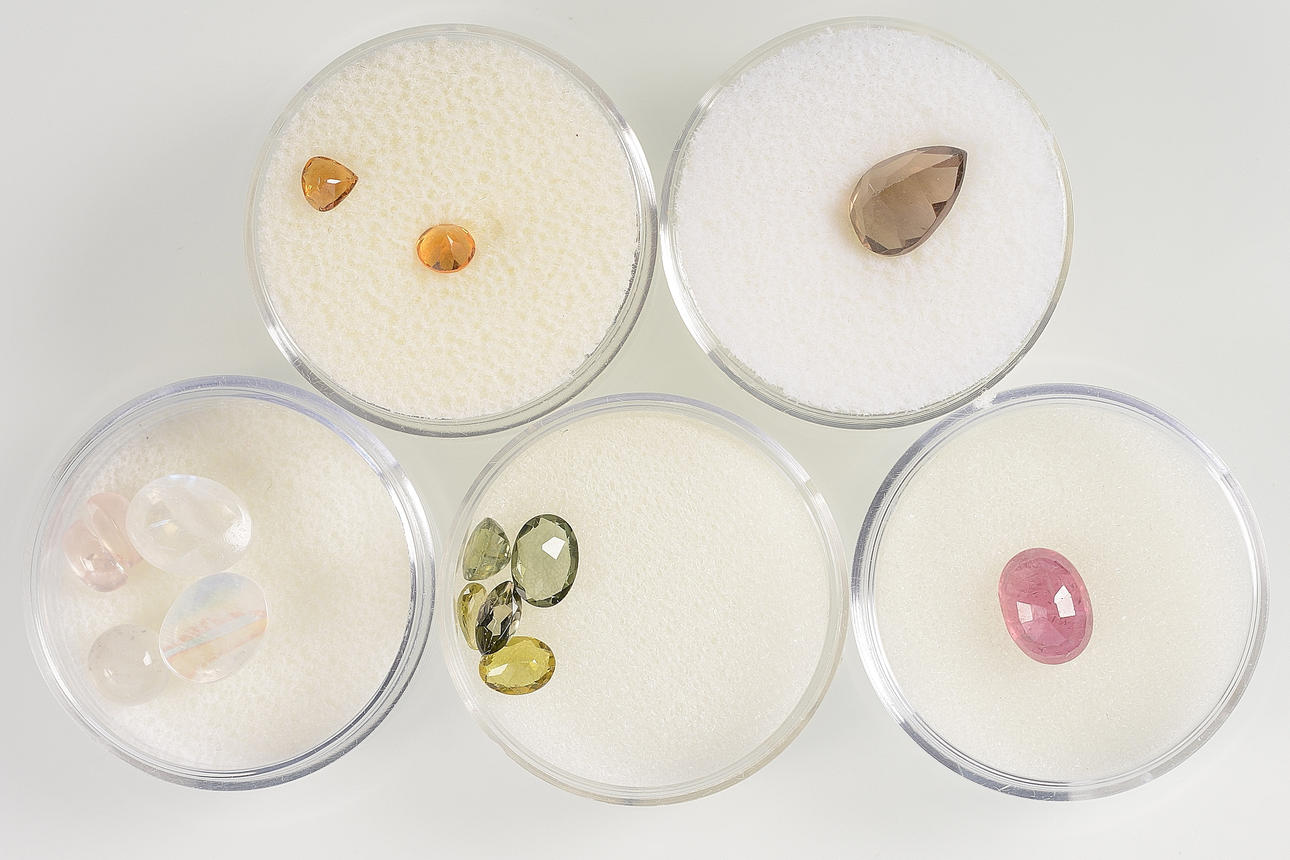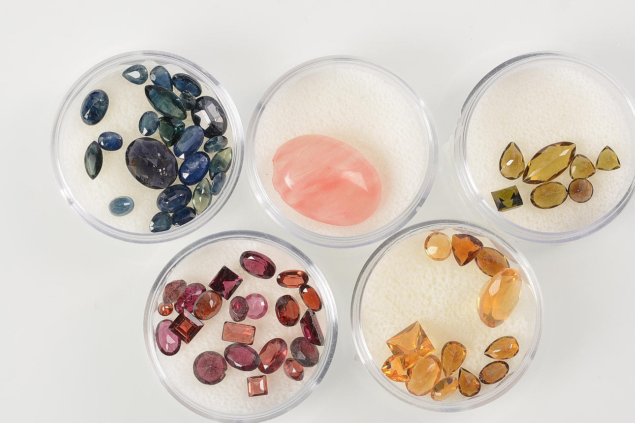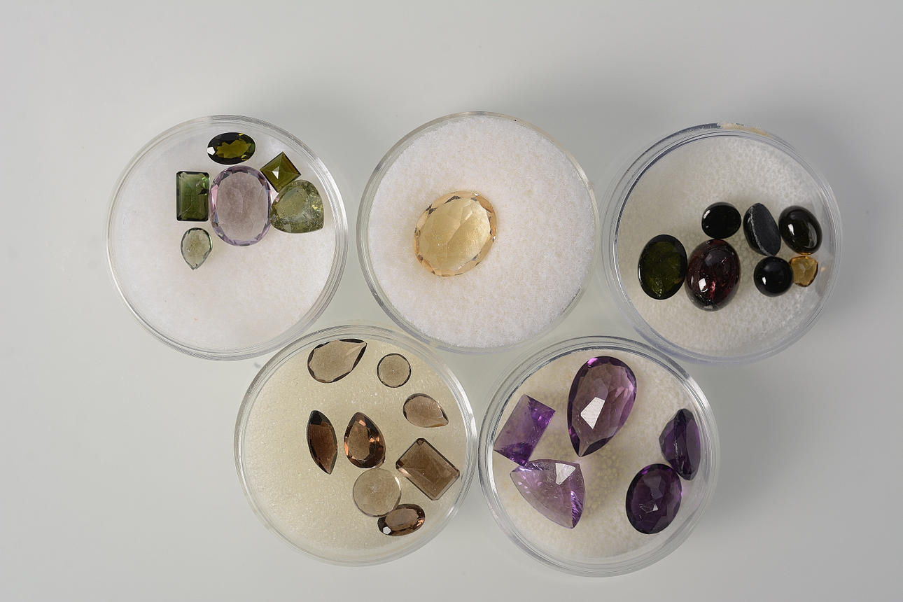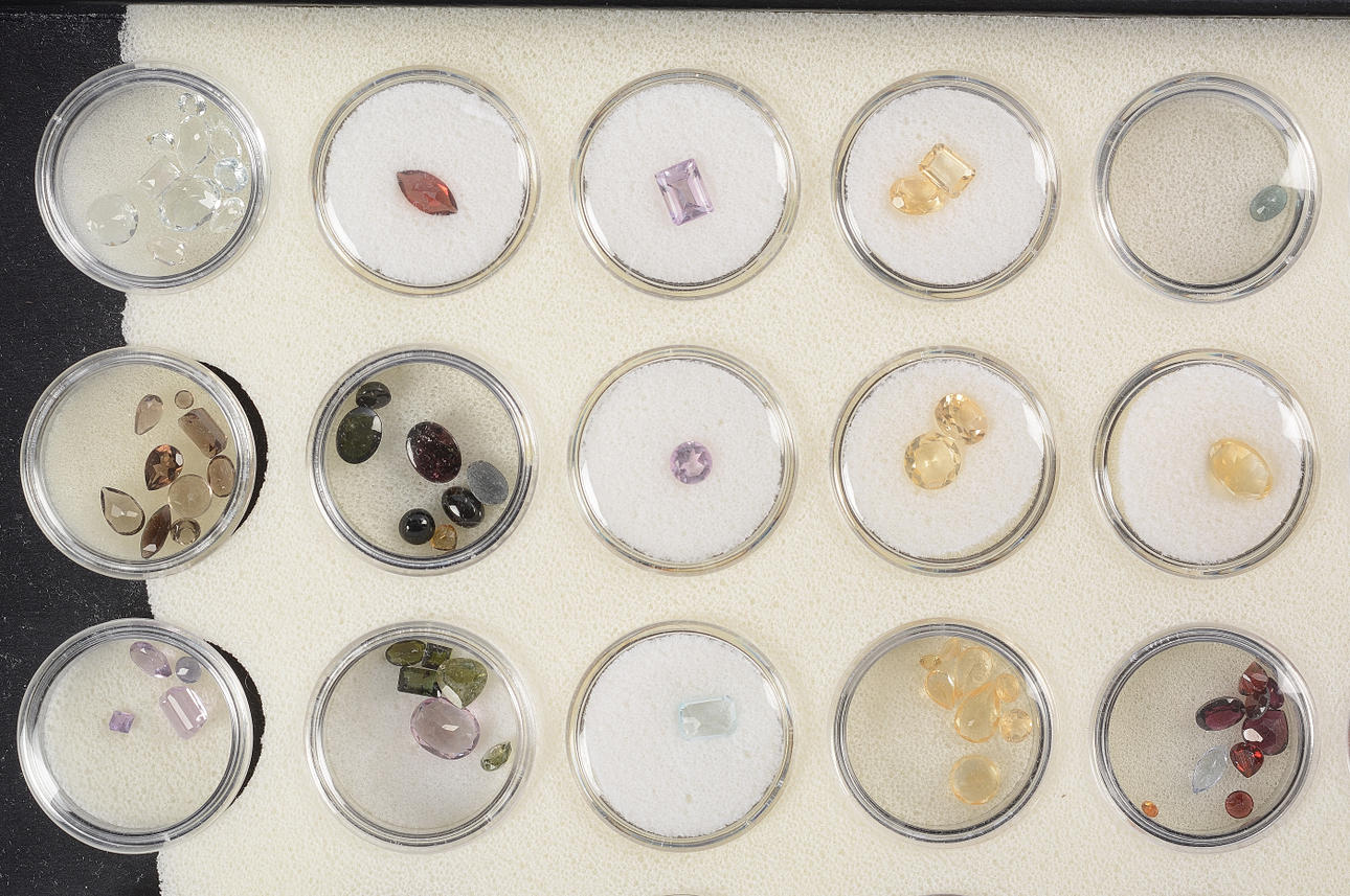 Alamandingranater, ametister, granater, safirer, mfl.