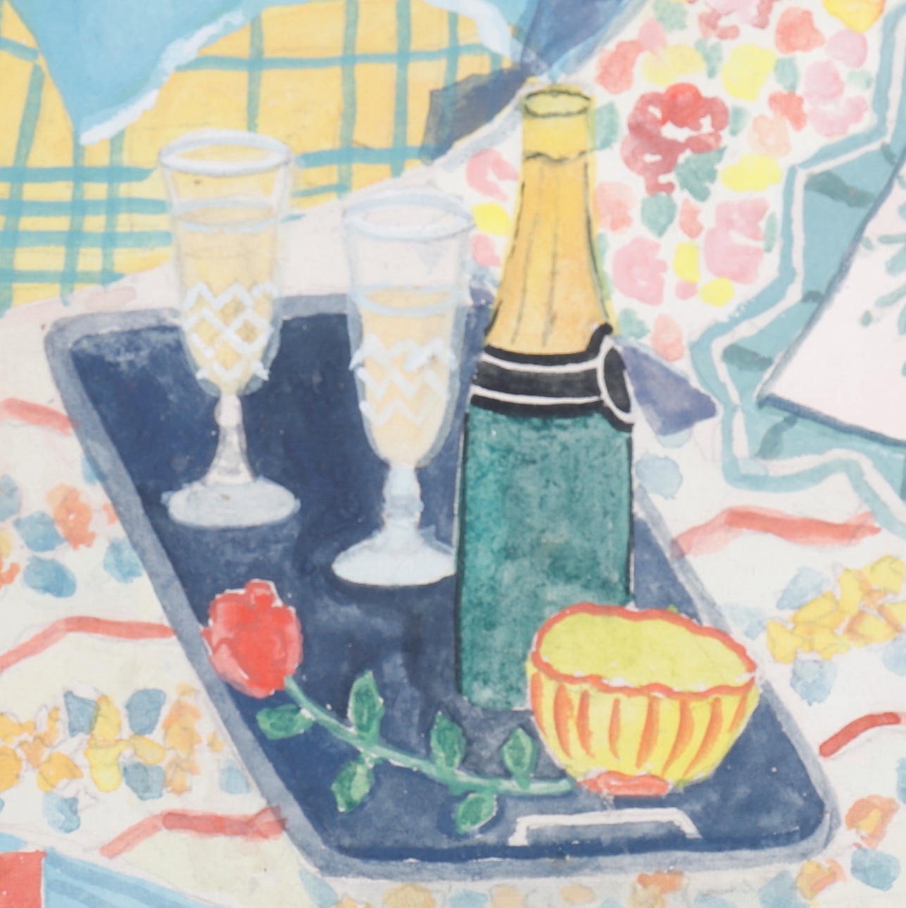 908204. PENNY QUESTED 1900-TAL. Champagne i bed.