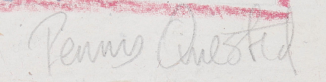 Ej examinerad ur ram. Någon missfärgning längst med arkets kanter.