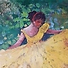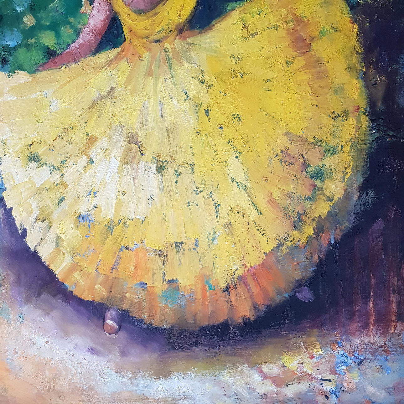Madjid, Rahnavardkar (*1943 Teheran) - ”Flicka i gul klänning”, olja på duk, signerad ”Madjid” längst ner till höger, ca. 100 x 90 cm, inramad.