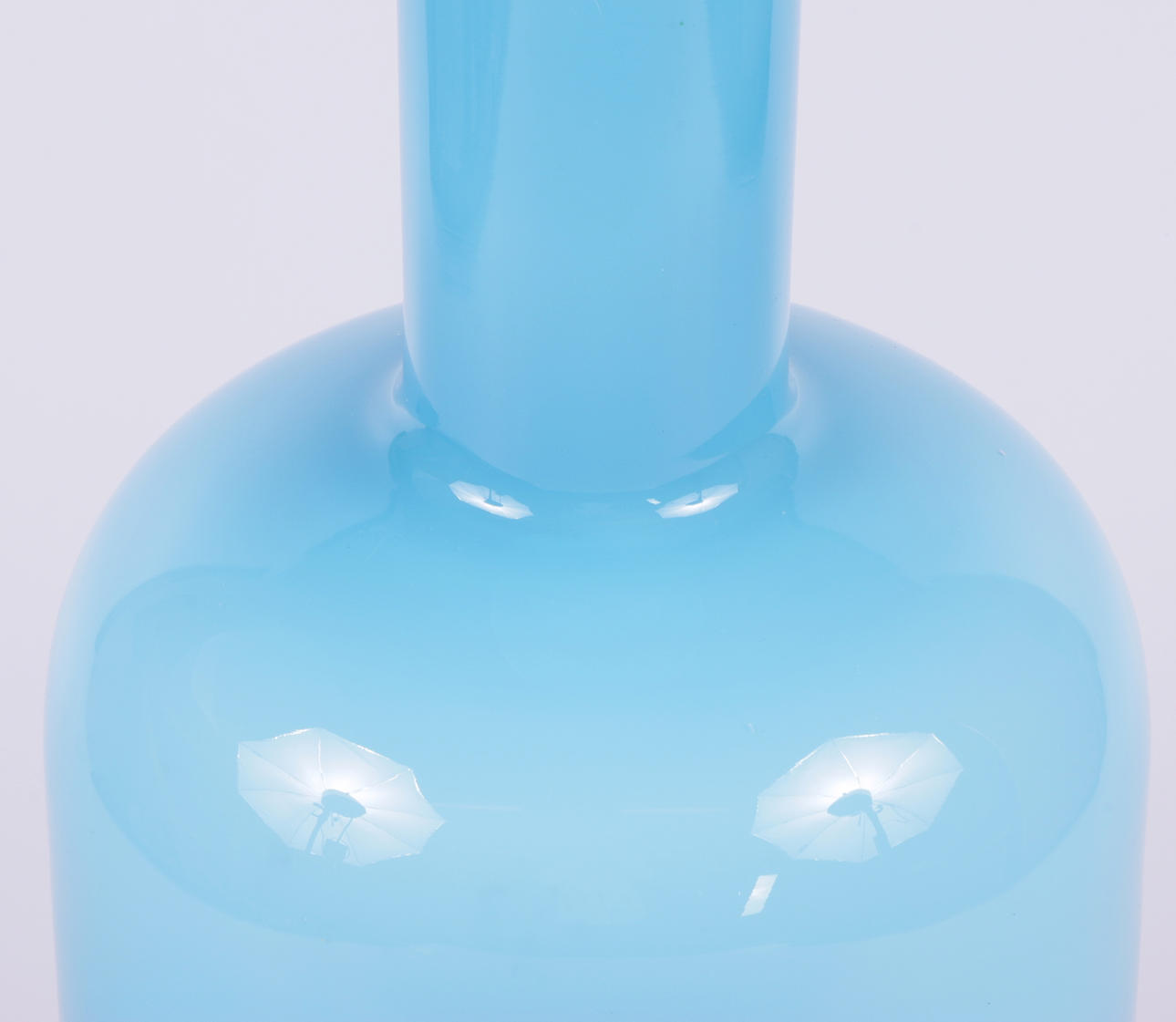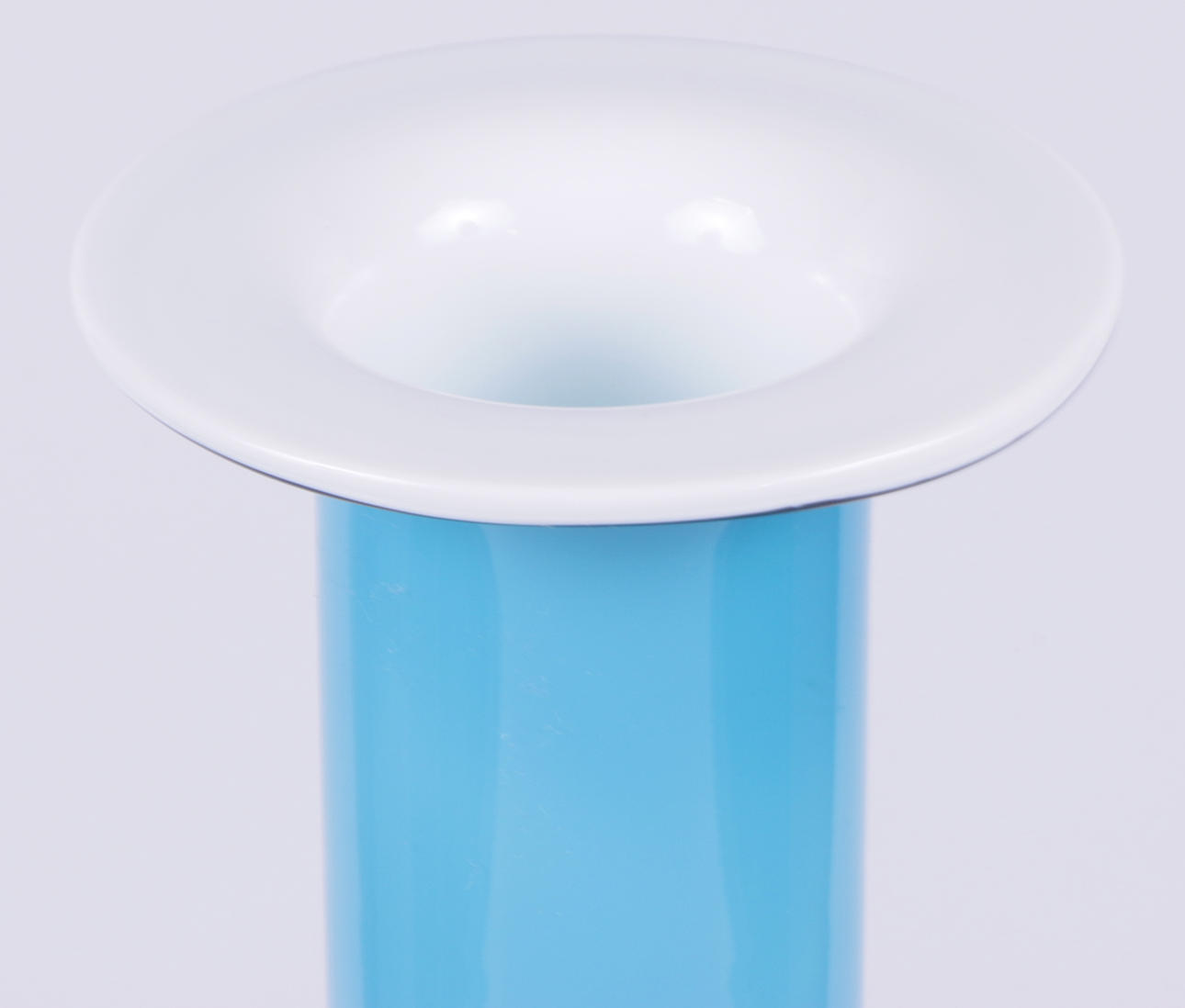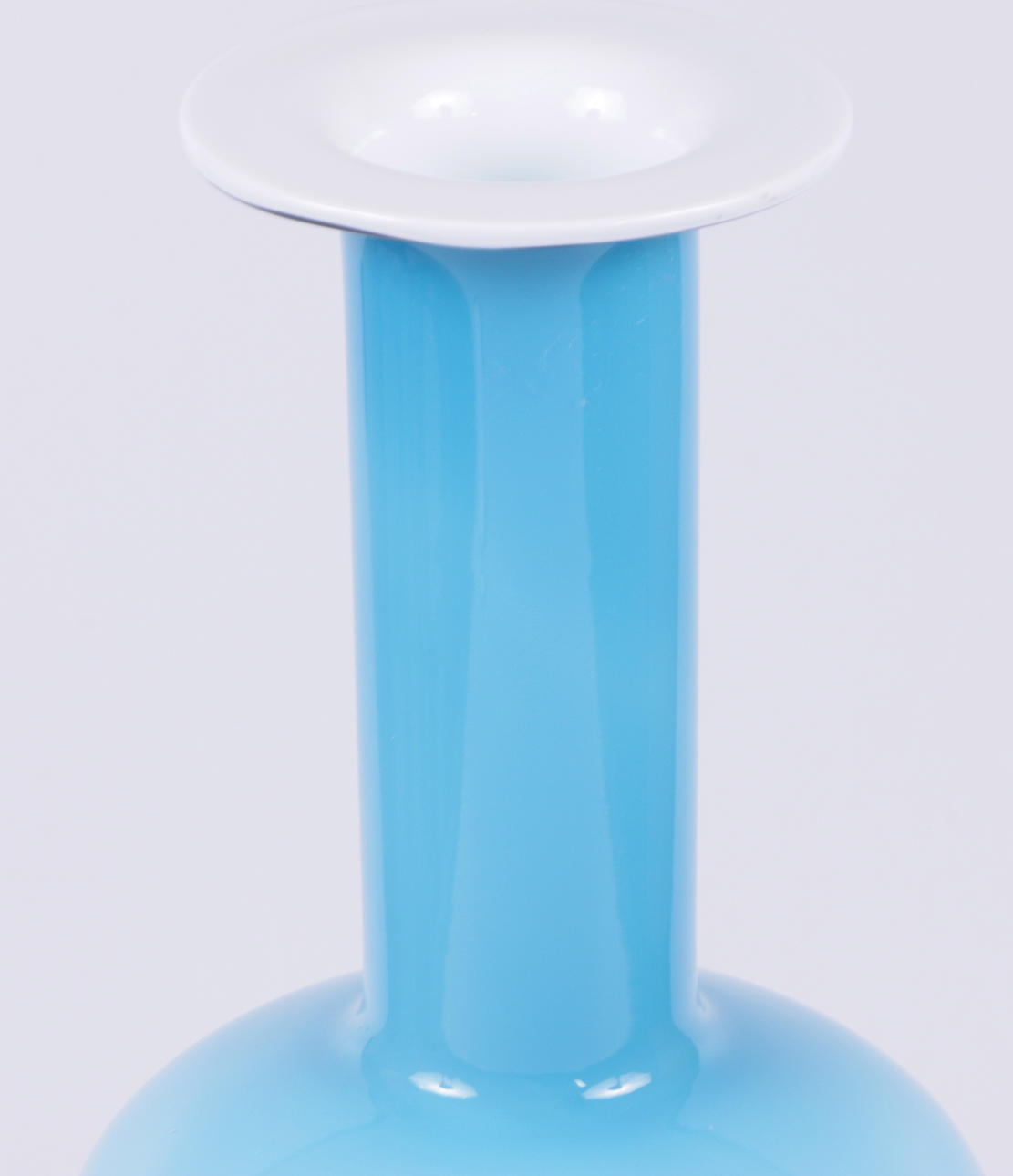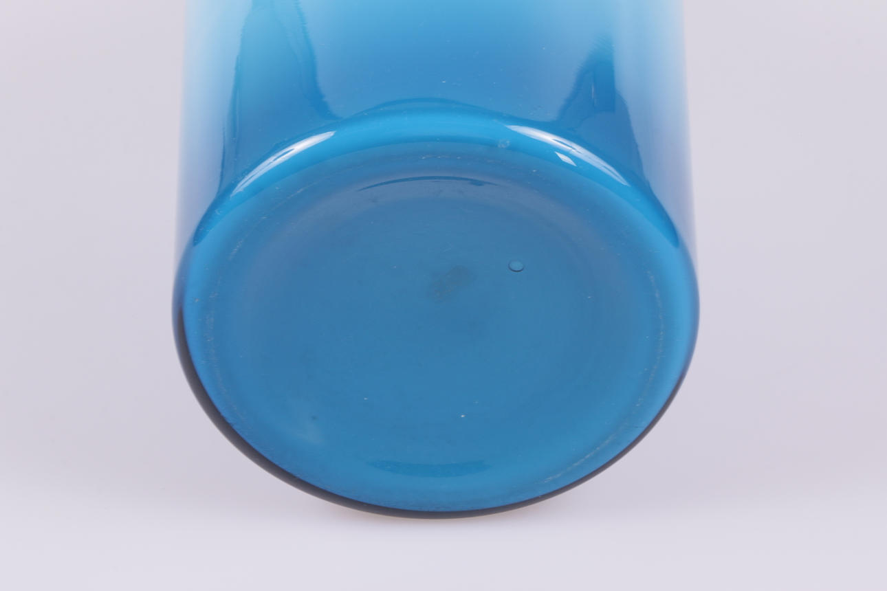 Vas i turkosblått glas i olika toner. Höjd 44 cm.