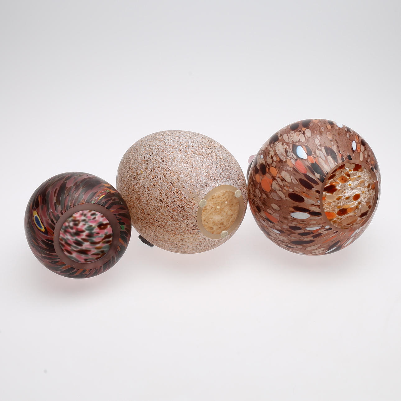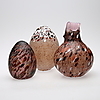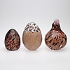 två ägg, signerade, mottlat glas, Boda, höjd 18-27 cm.