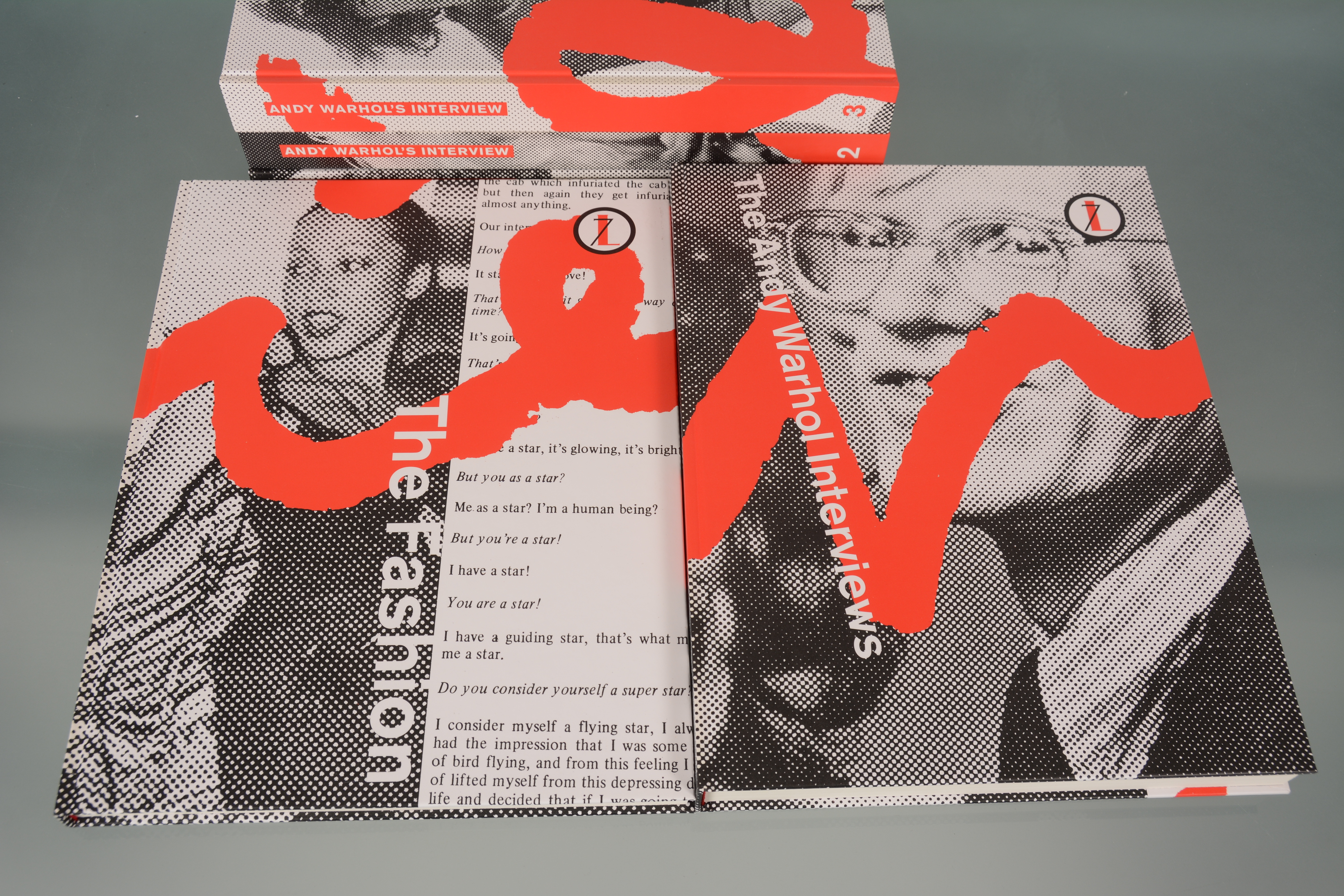911119. ANDY WARHOL. Interview, 6 böcker samt katalog.
