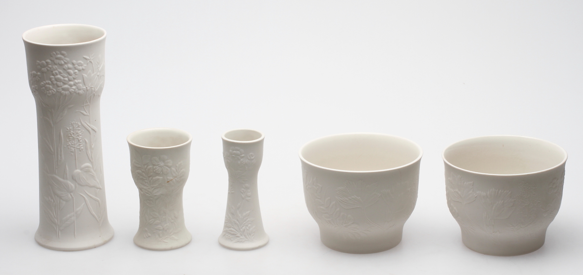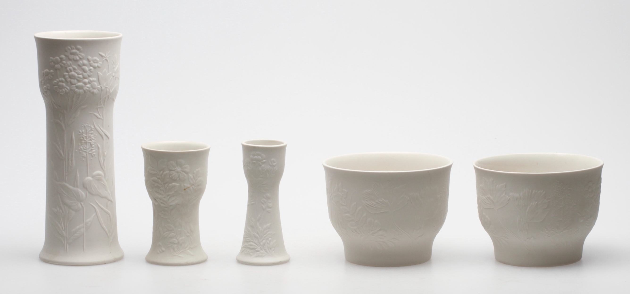 91112. VASER samt YTTERFODER, 5 delar, porslin, "Suvi", Arabia.