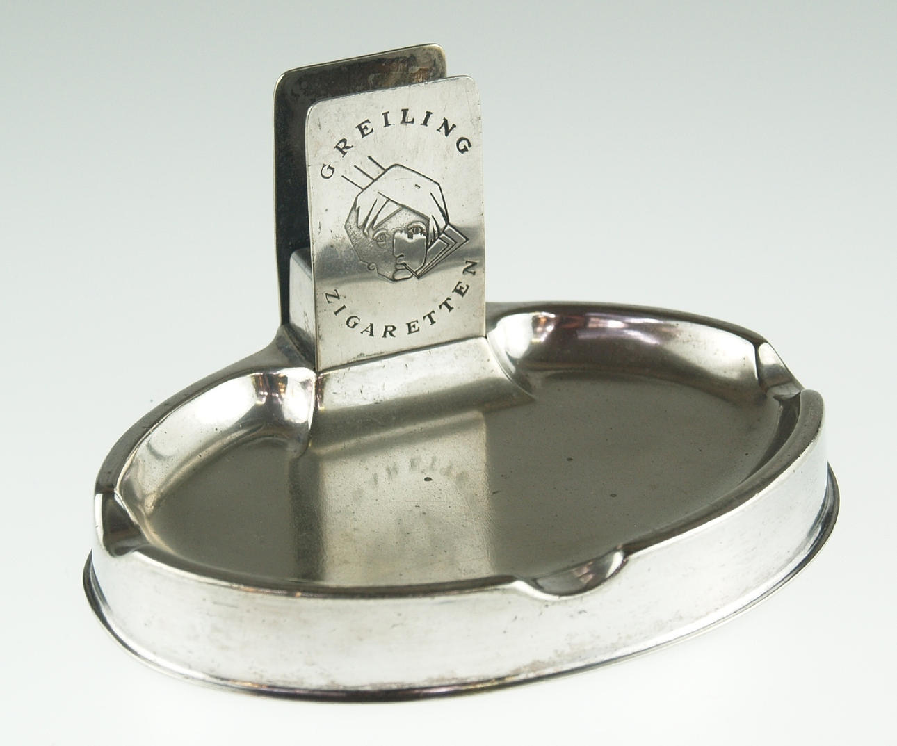 Reklam askkopp - Greiling, runt 1920, med tändsticksask hållare, b.ca.15 cm.