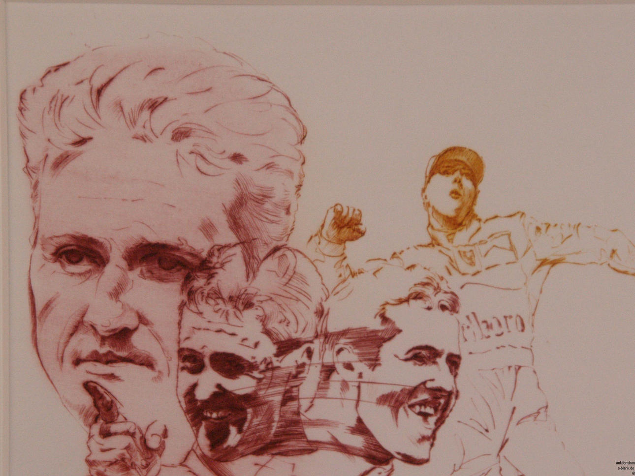 Borchert, Hans (född 1951) - Michael Schuhmacher, färglitografi, signerad längst ner, daterad '1999' och numrerad 135/150, inramad med PP under glas, PP cutout ca.29x20cm.